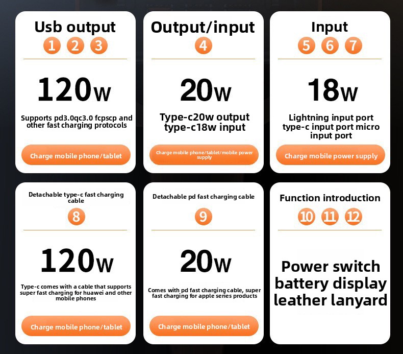120W Fast Charging Power Bank with High Capacity