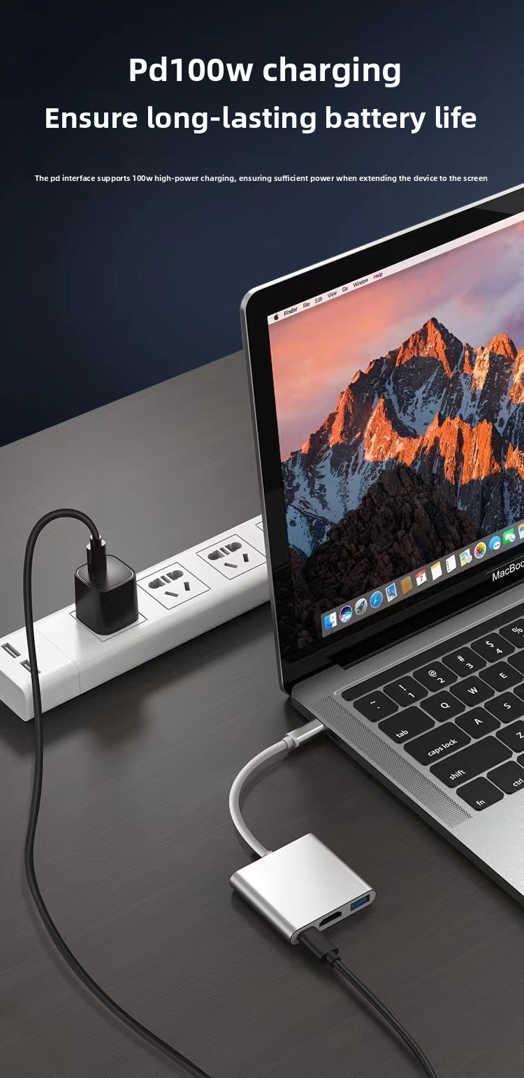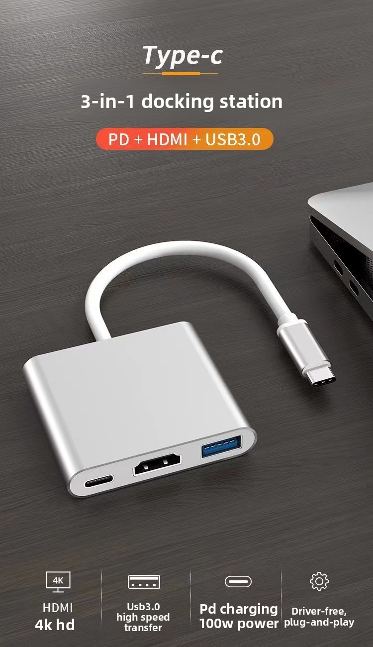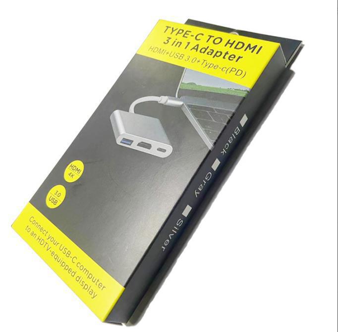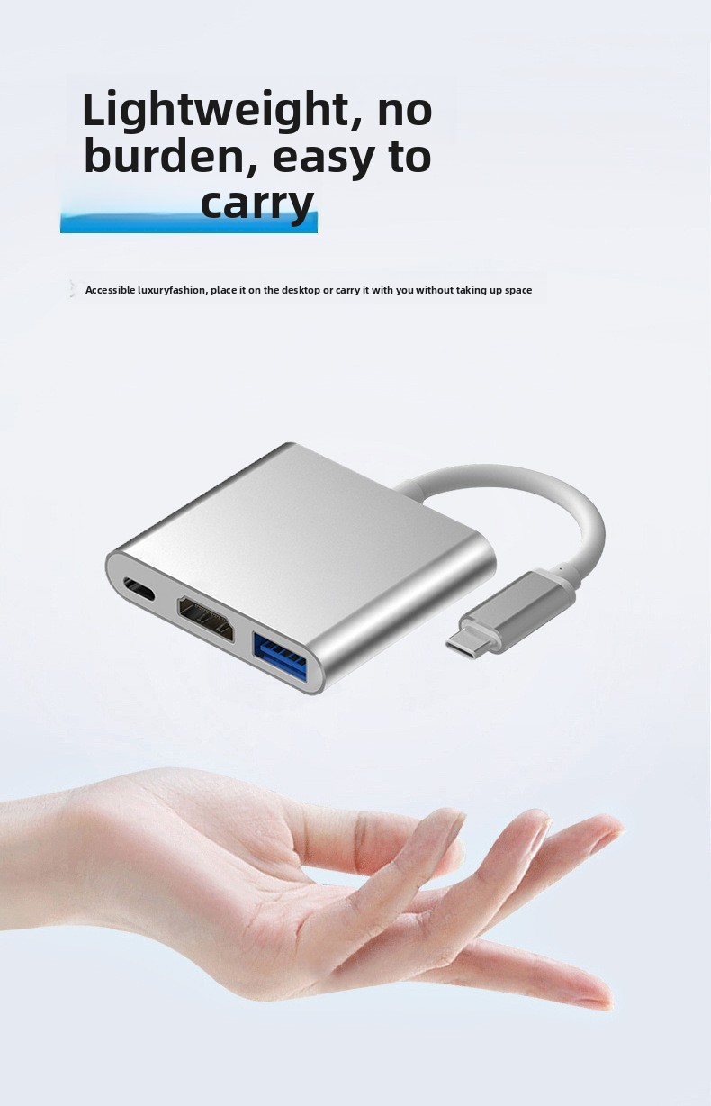 Multiport Adapter: Combines Type-C to HDMI, USB 3.0, and USB-C in one compact device.