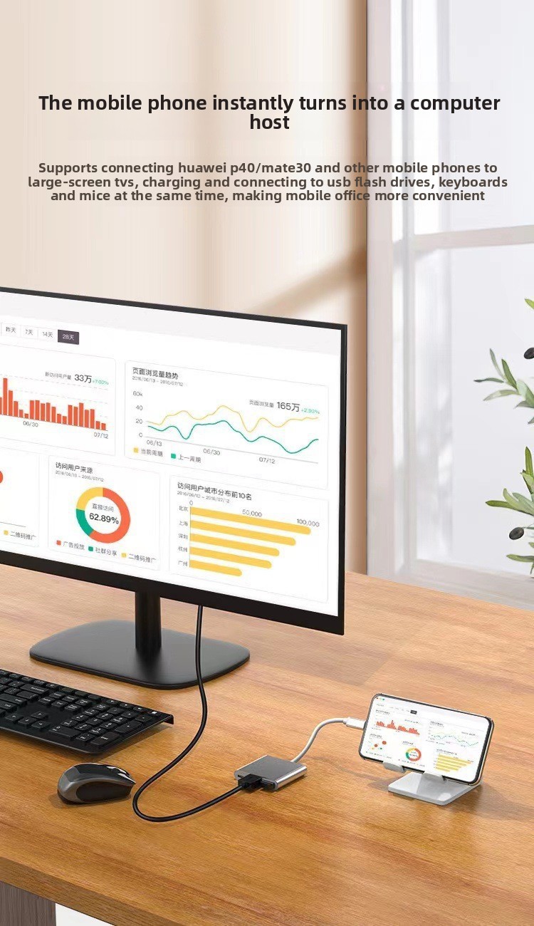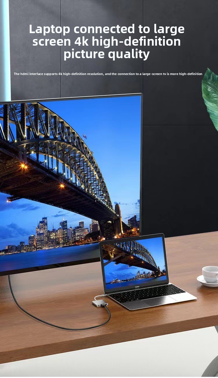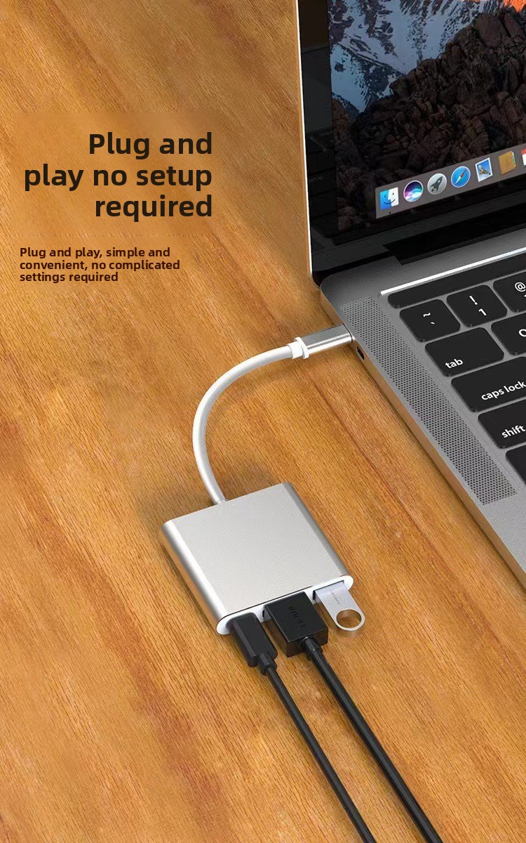Multiport Adapter: Combines Type-C to HDMI, USB 3.0, and USB-C in one compact device.