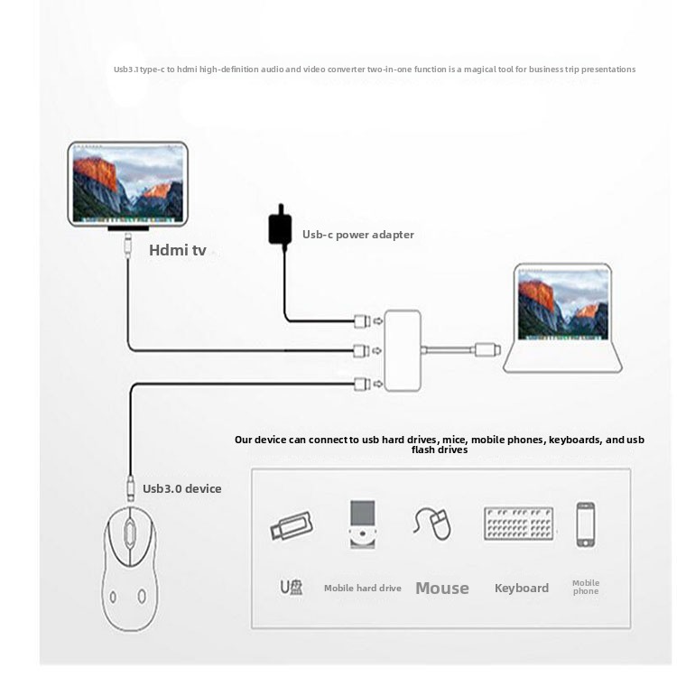 Transmission speed up to 5Gbps,and work with keyboard, mouse, flash drive or a USB cable for syncing and charging smartphones or other devices.