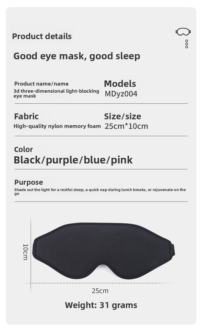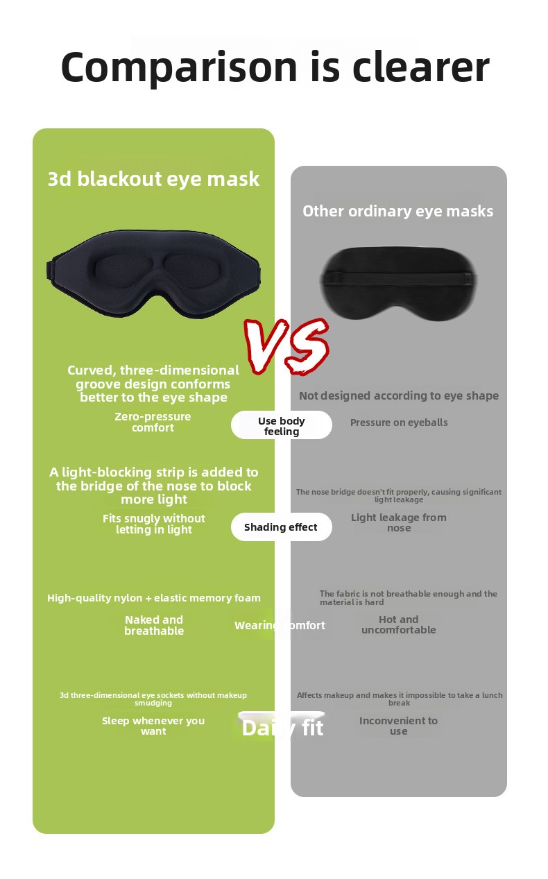 3D Design: Ergonomic 3D shape for comfortable fit and zero eye pressure.