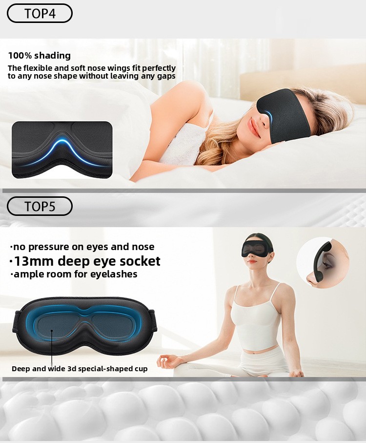 3D Design: Ergonomic shape fits facial contours without pressing on eyes.