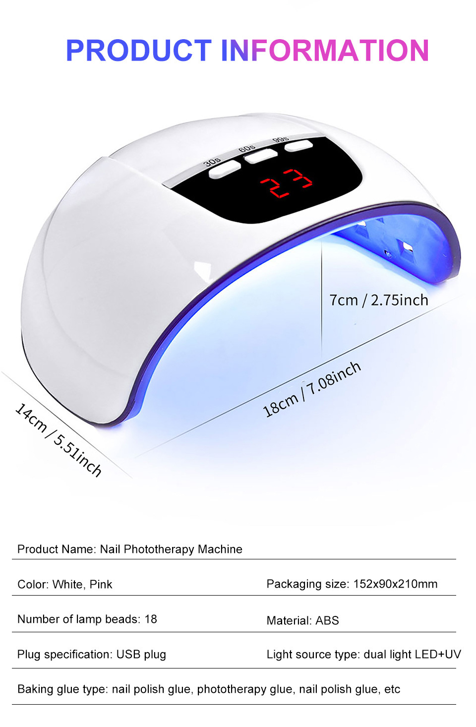 High Power 45W: Fast drying with strong UV/LED light for efficient nail curing.