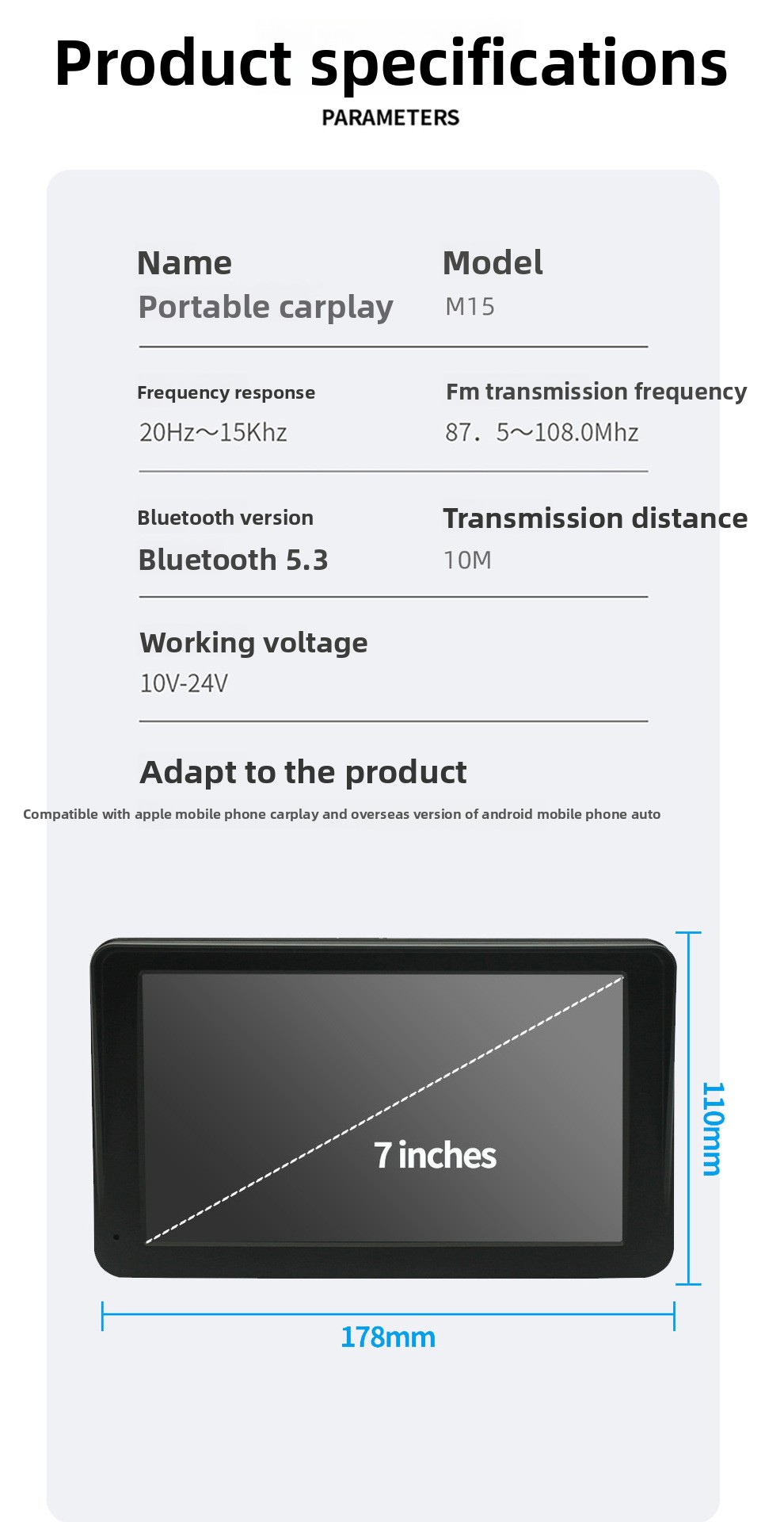7-inch Portable Carplay Display