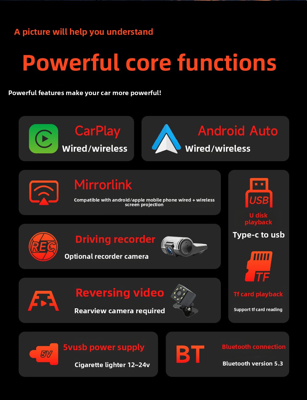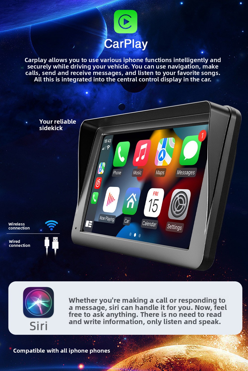 Wireless & Wired CarPlay: Supports both wireless and wired CarPlay connectivity.