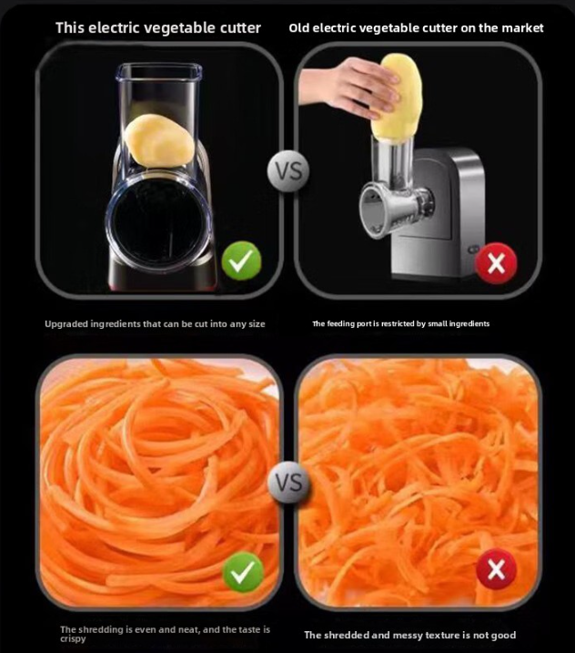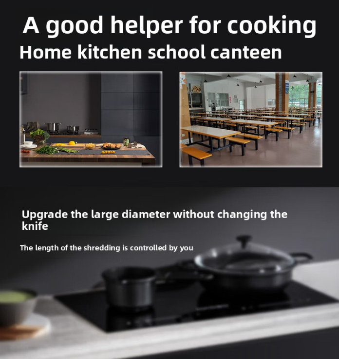 Electric Operation: Effortless vegetable cutting with 220V power supply.