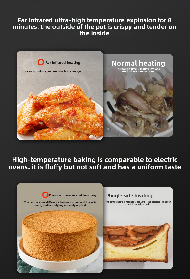 Flip-Free Design: No need to flip food during cooking for even heating.