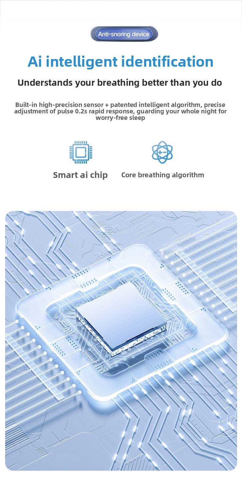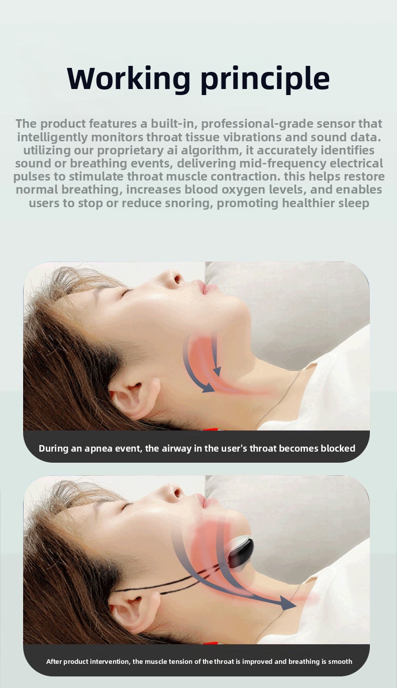 Intelligent Anti-Snoring: Uses weak pulse stimulation to reduce or suppress snoring when detecting sounds over 65dB.