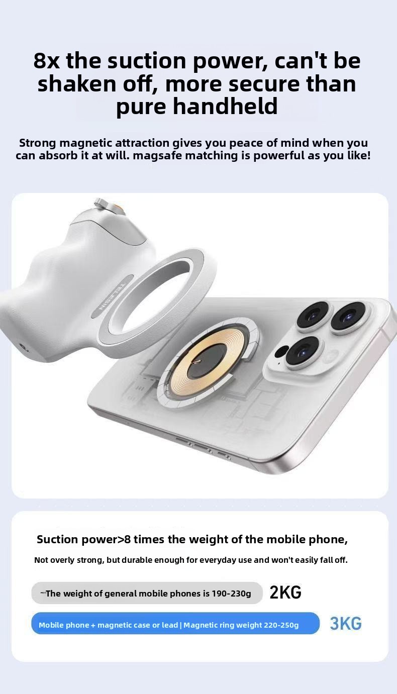 Magsafe Magnetic Suction: Strong magnetic attachment for secure and stable phone mounting during shooting.