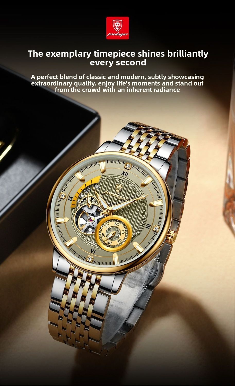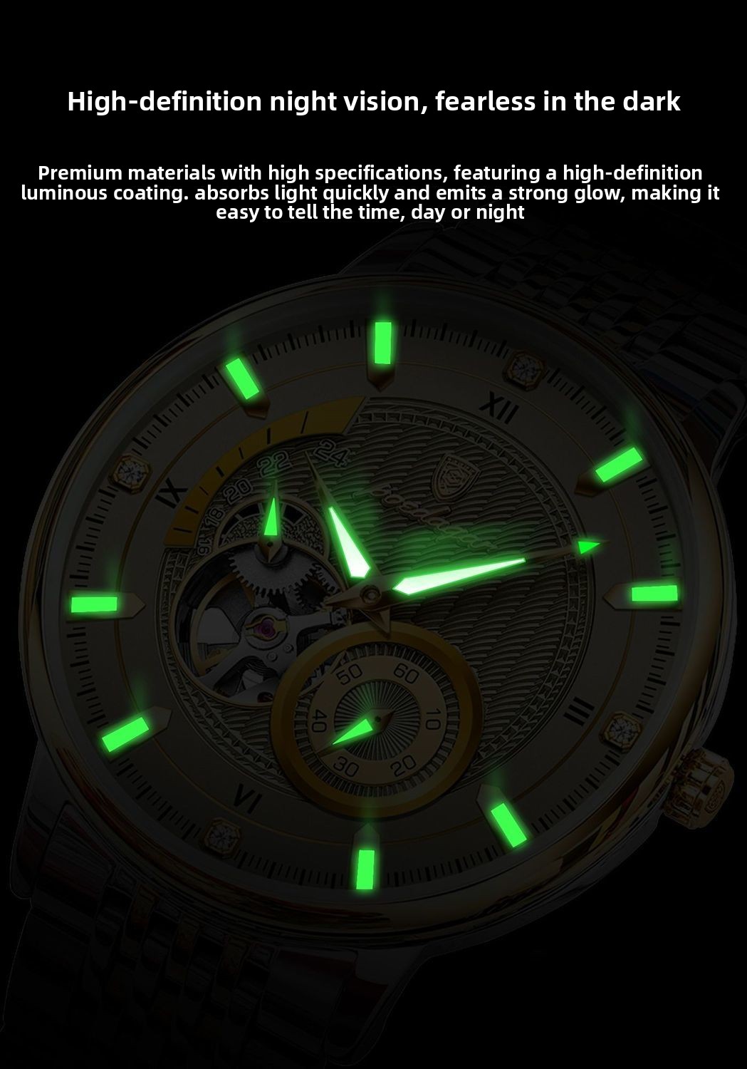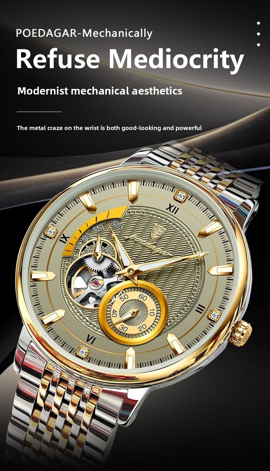 Fully Automatic Movement: Self-winding mechanism for precise timekeeping without batteries.