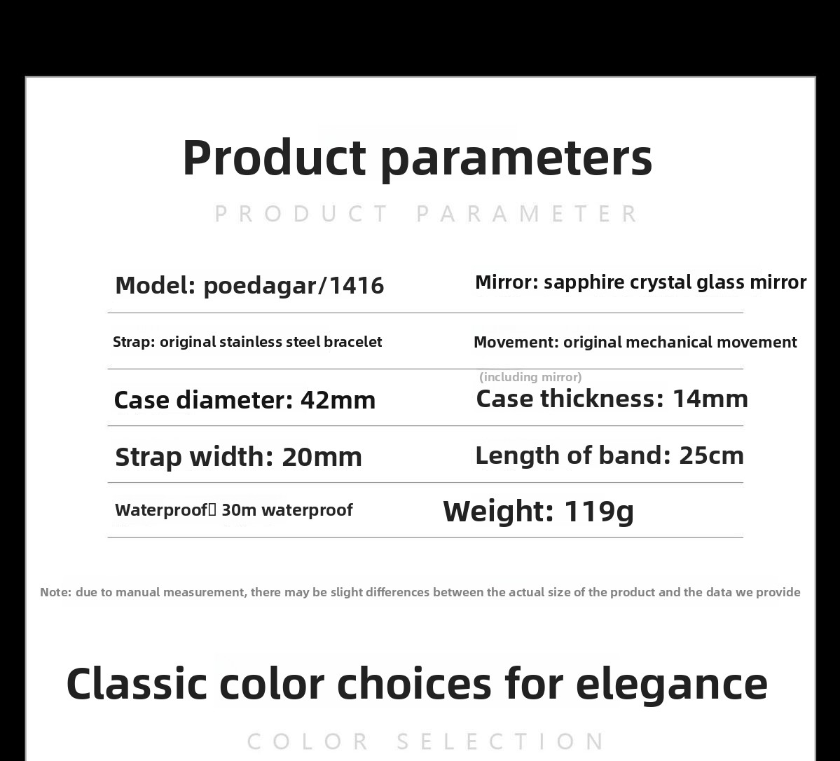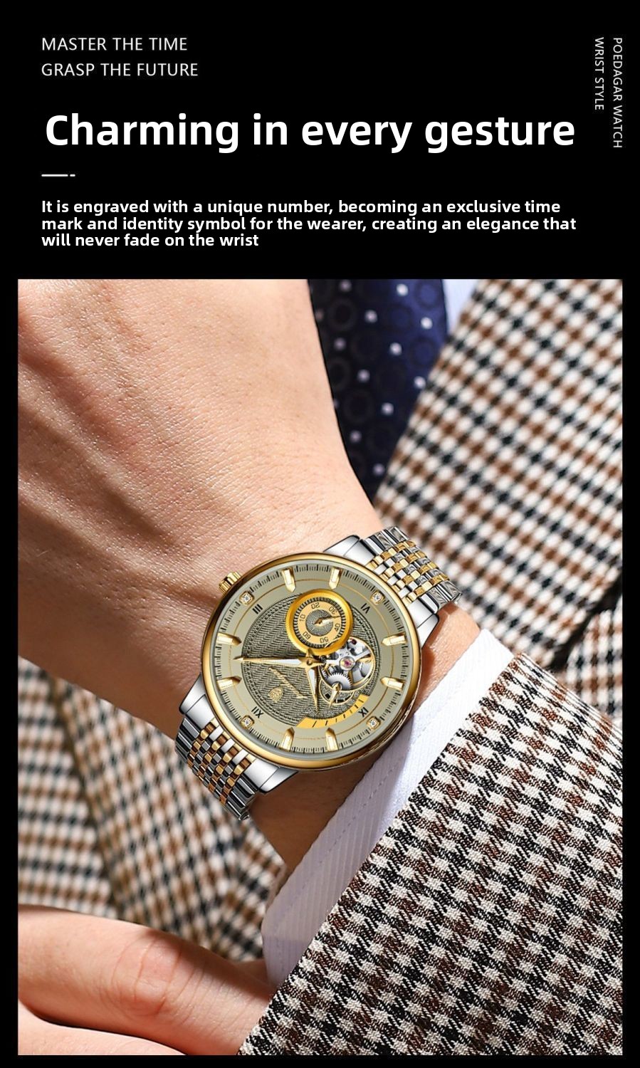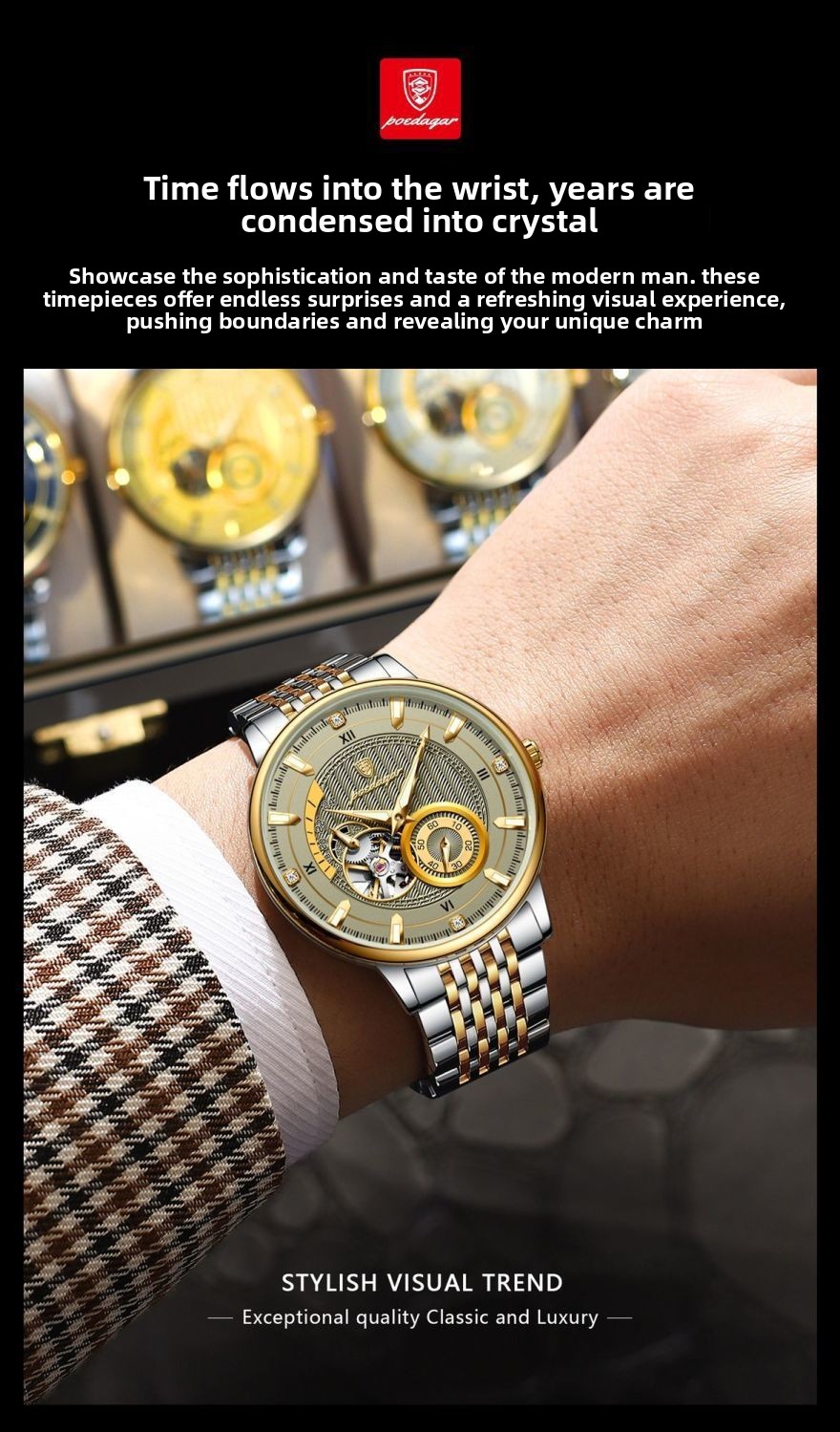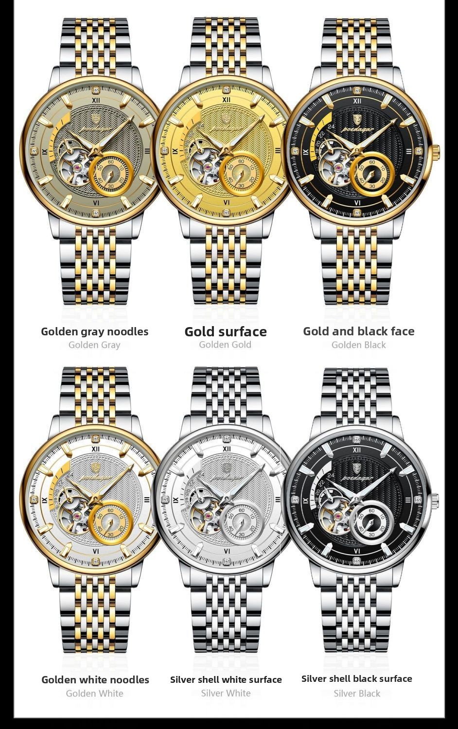 Fully Automatic Movement: Self-winding mechanism for precise timekeeping without batteries.