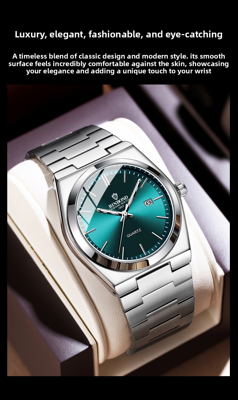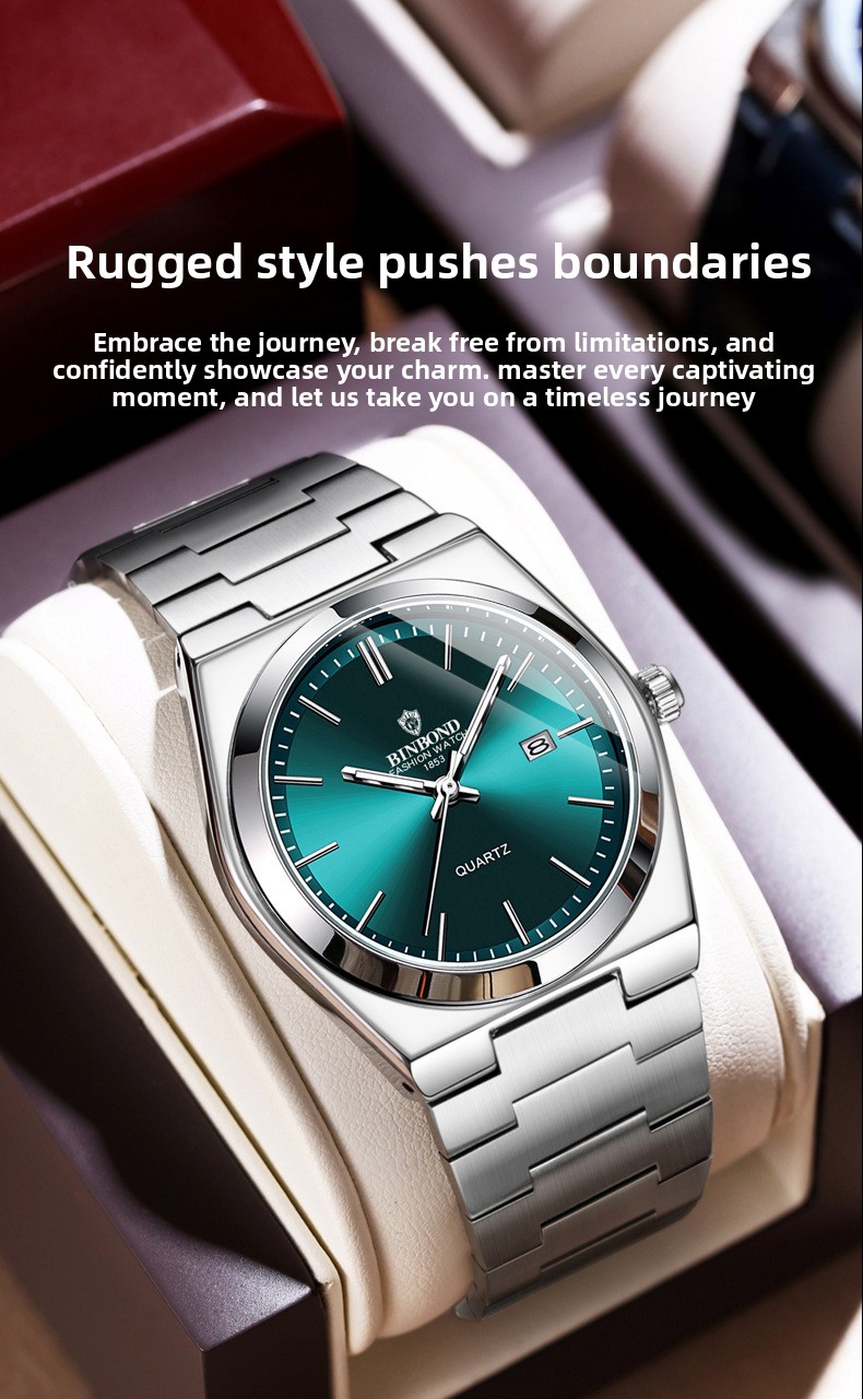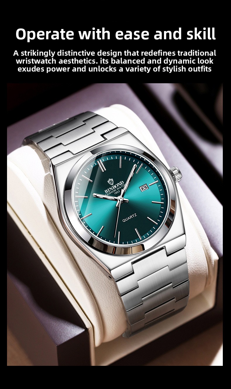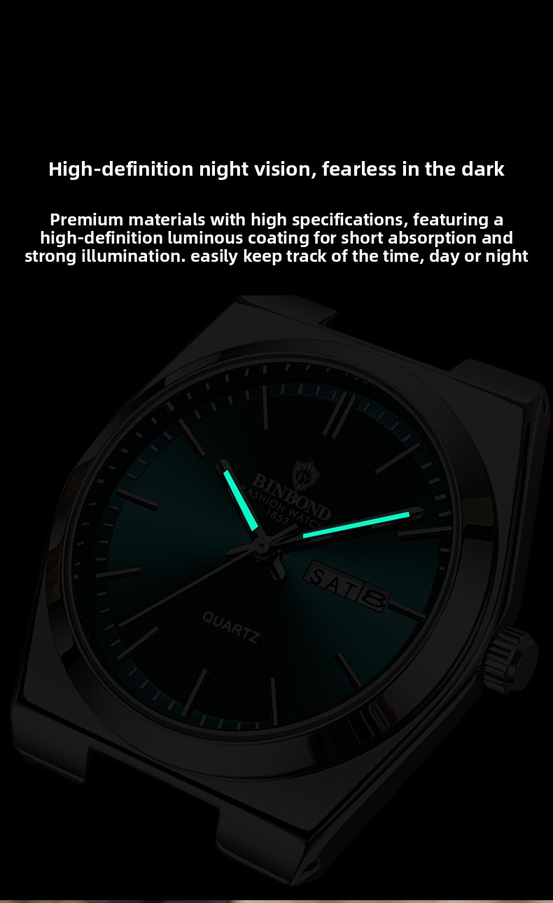 Binbang Stainless Steel Men's Quartz Watch with Double Calendar