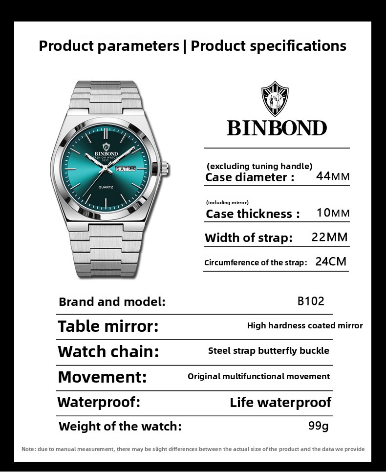 Quartz Movement: Accurate and reliable quartz movement for precise timekeeping.