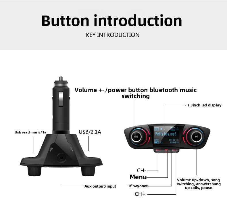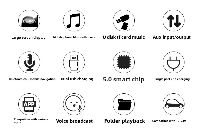 Multimedia Playback: Supports MP3/WMA formats via USB/TF card, with U disk and TF card playback.