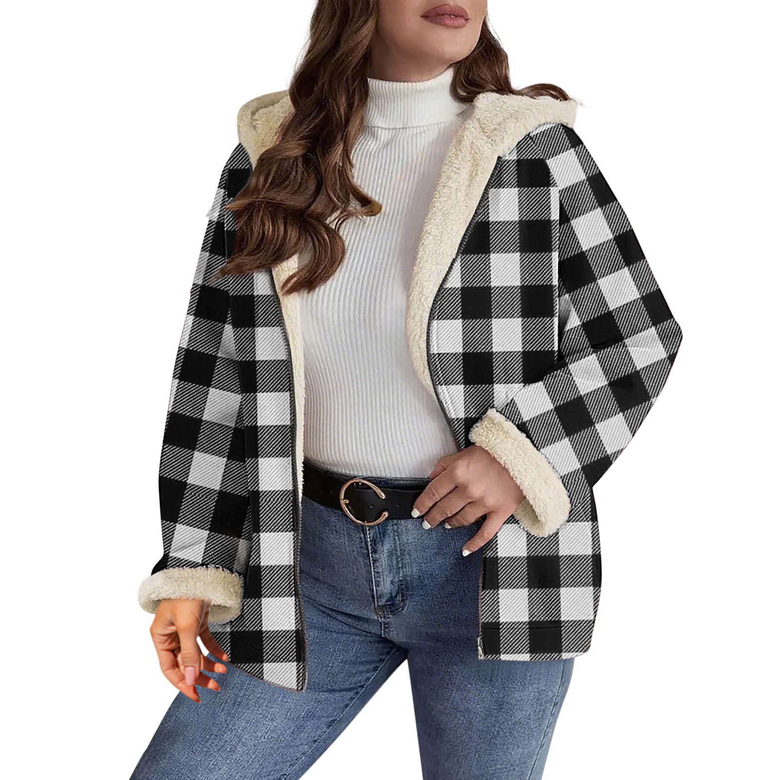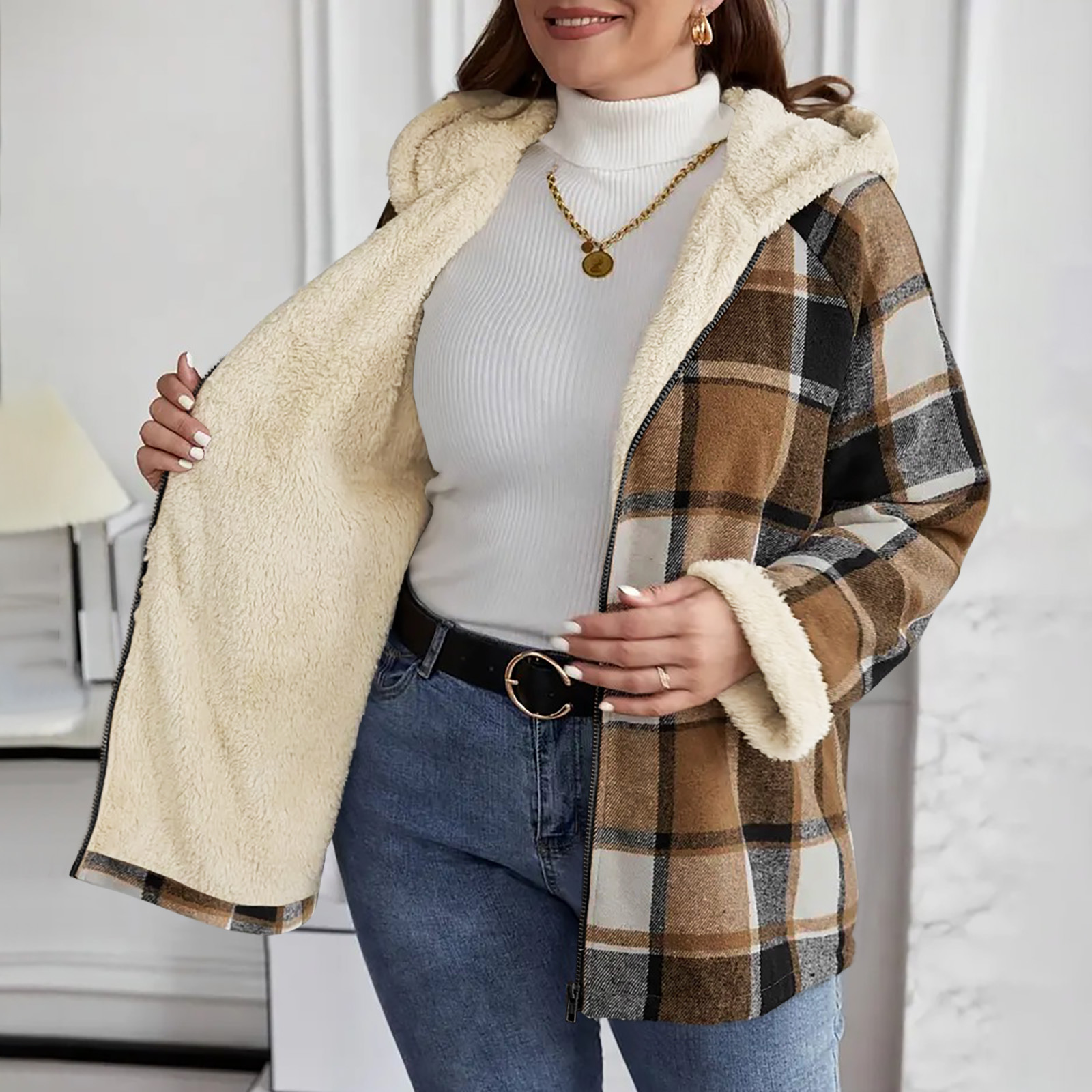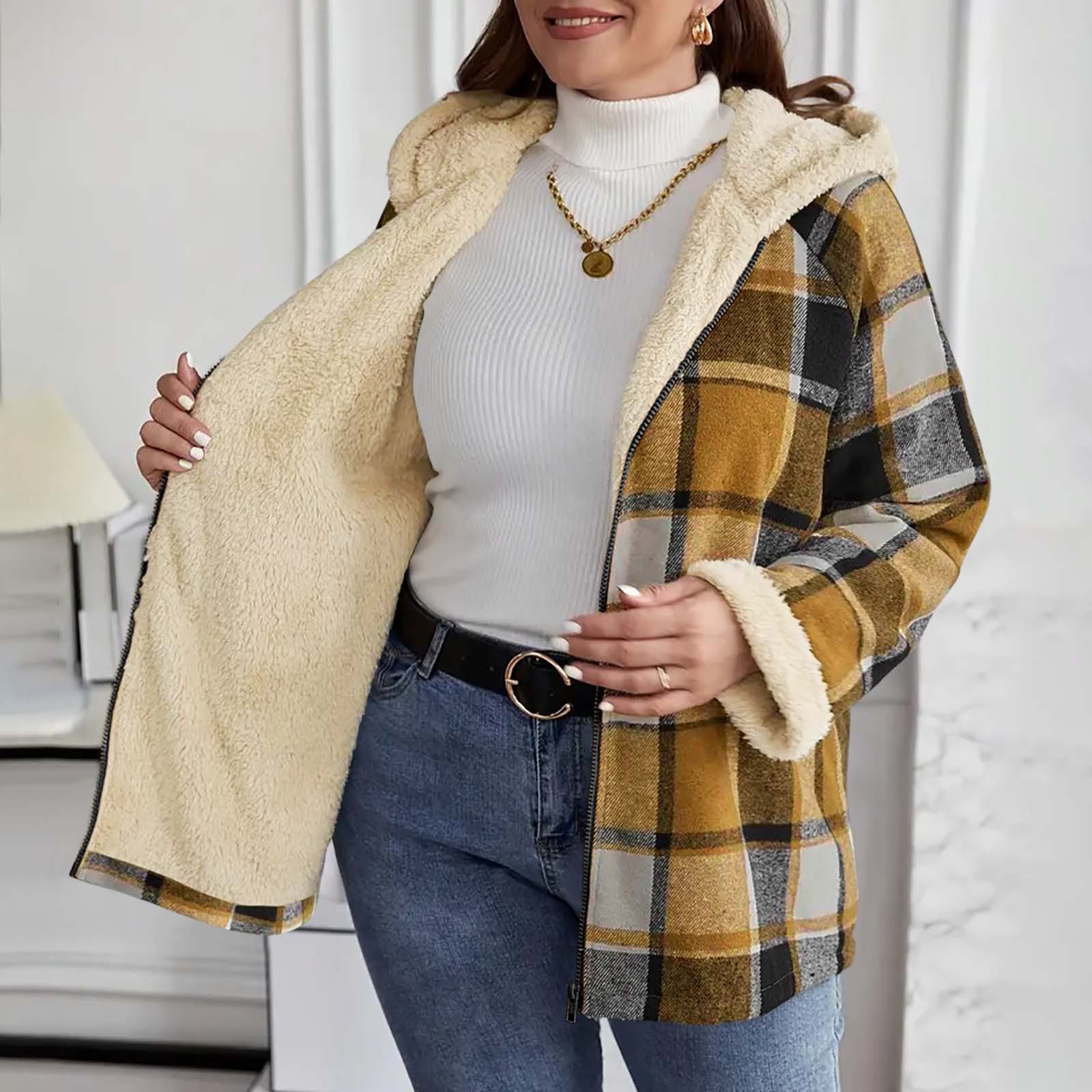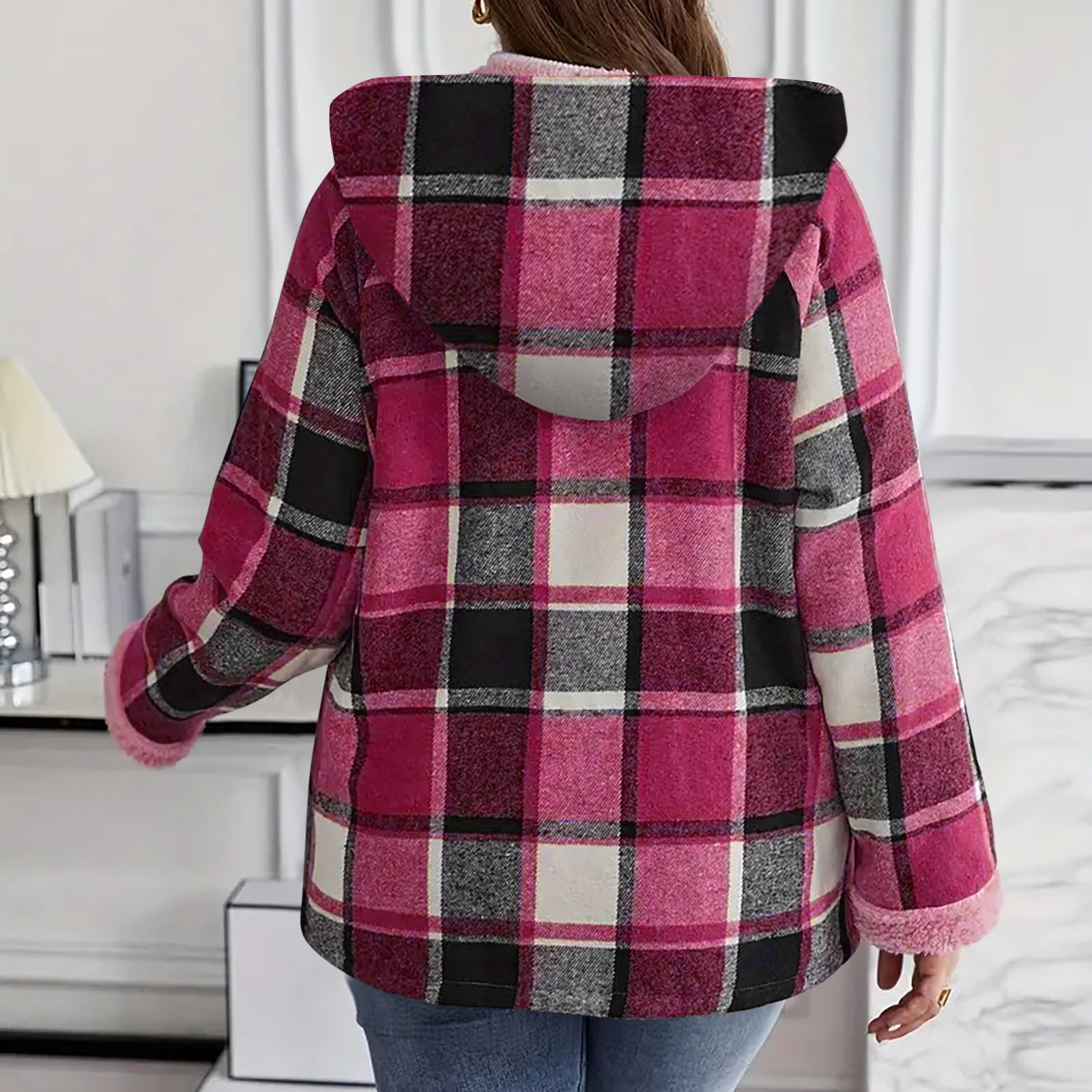 Checkered Patchwork Fleece-Lined Hooded Sweatshirt Jacket
