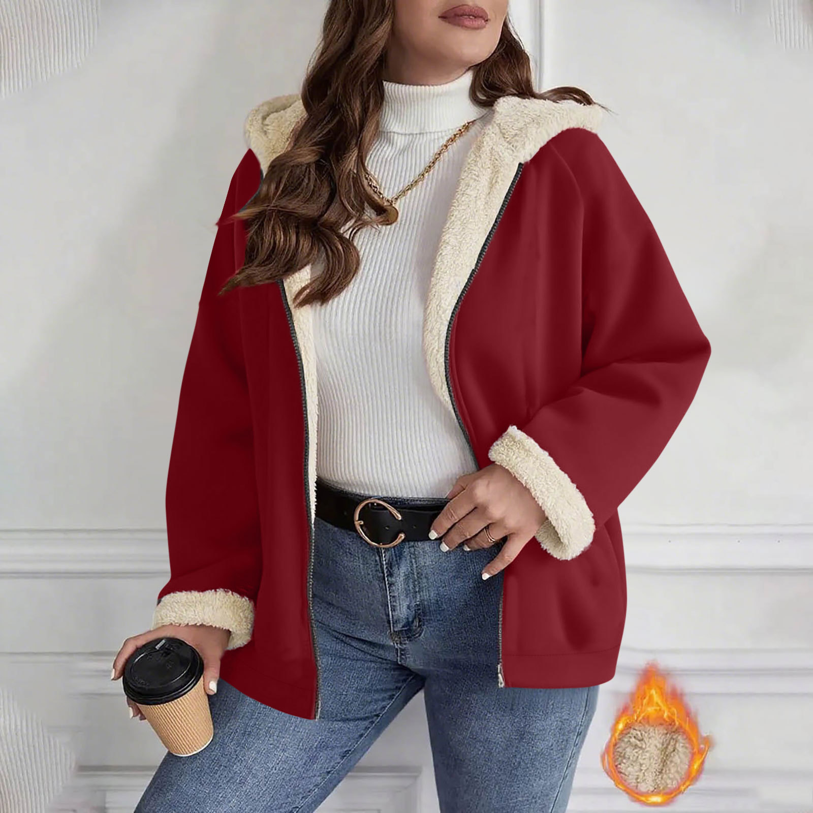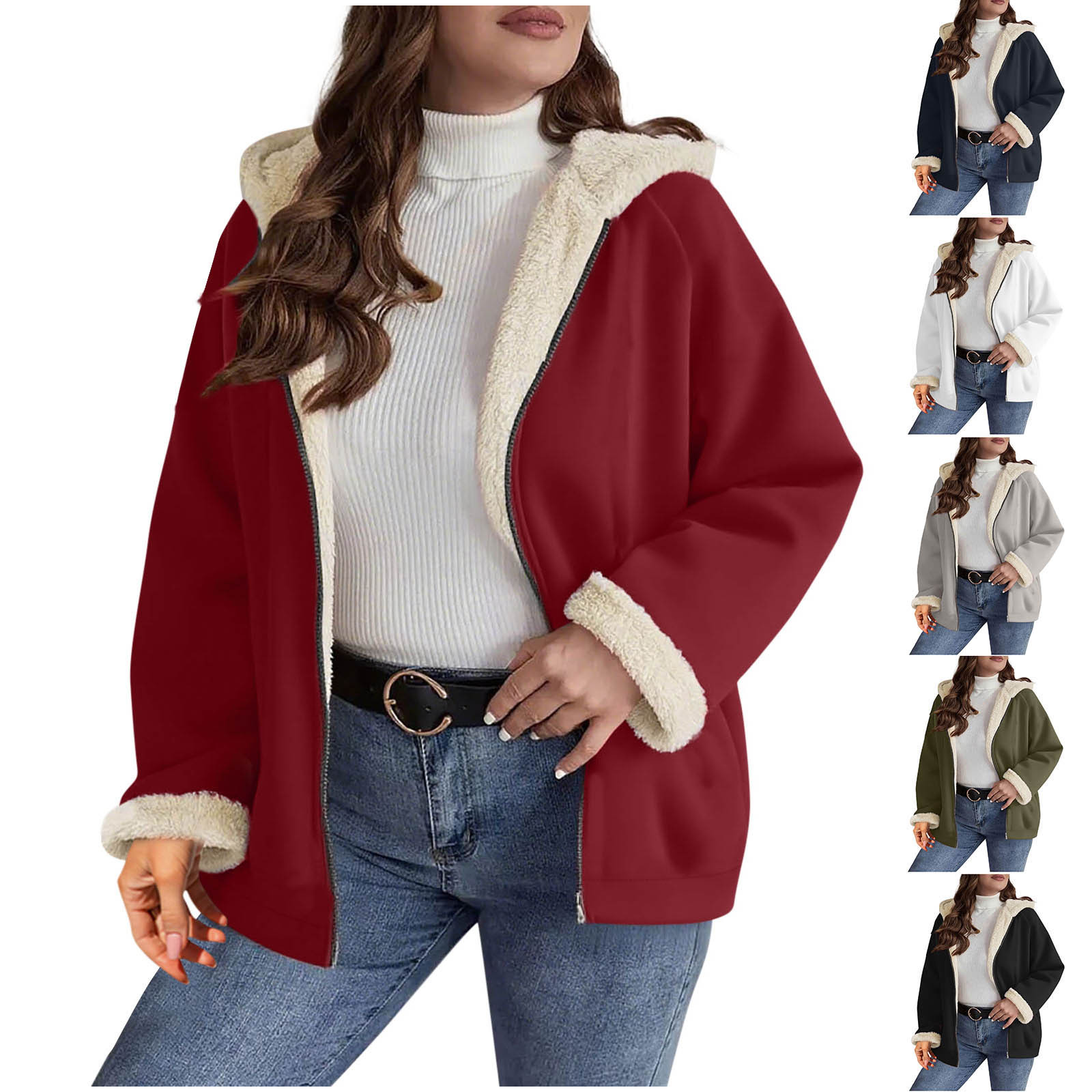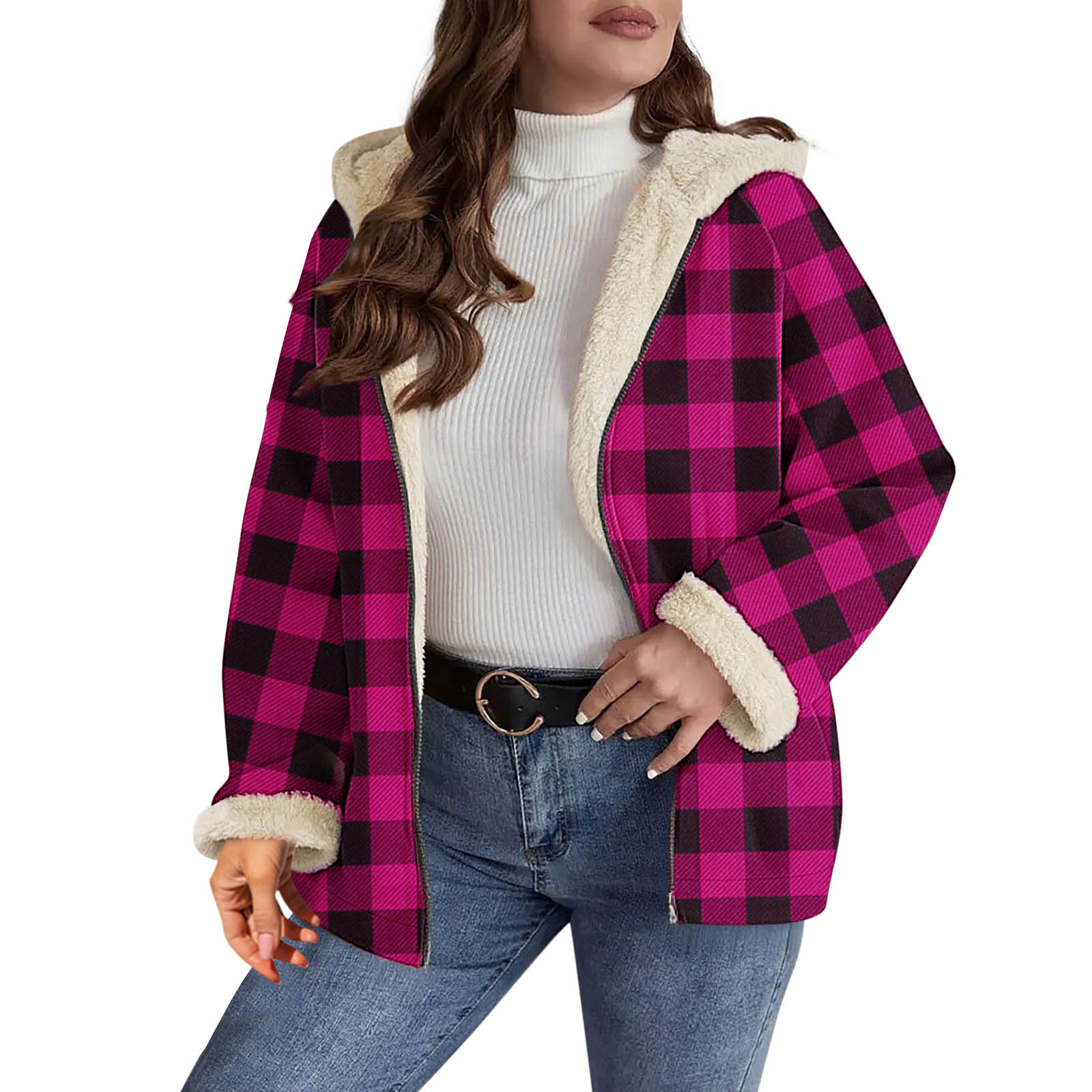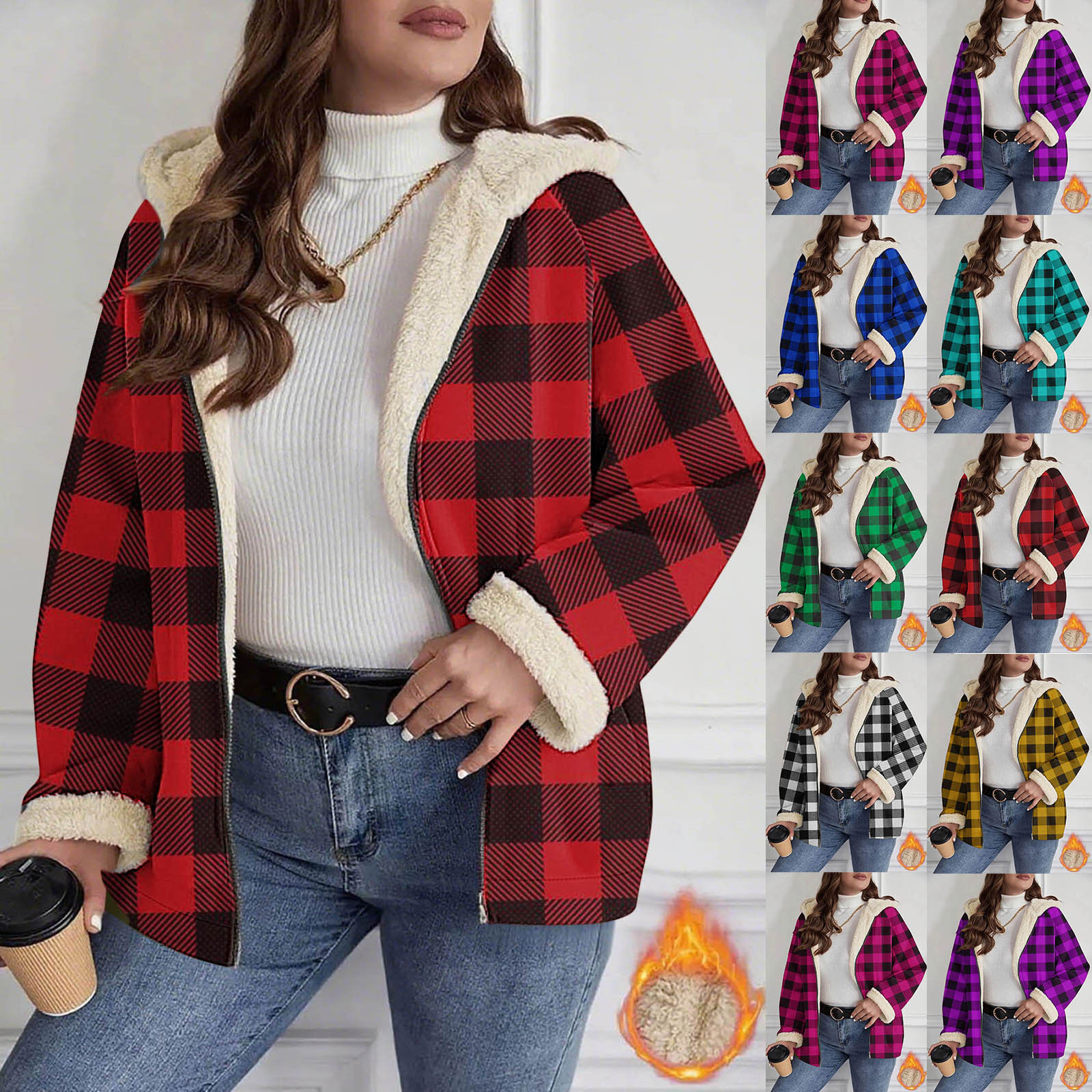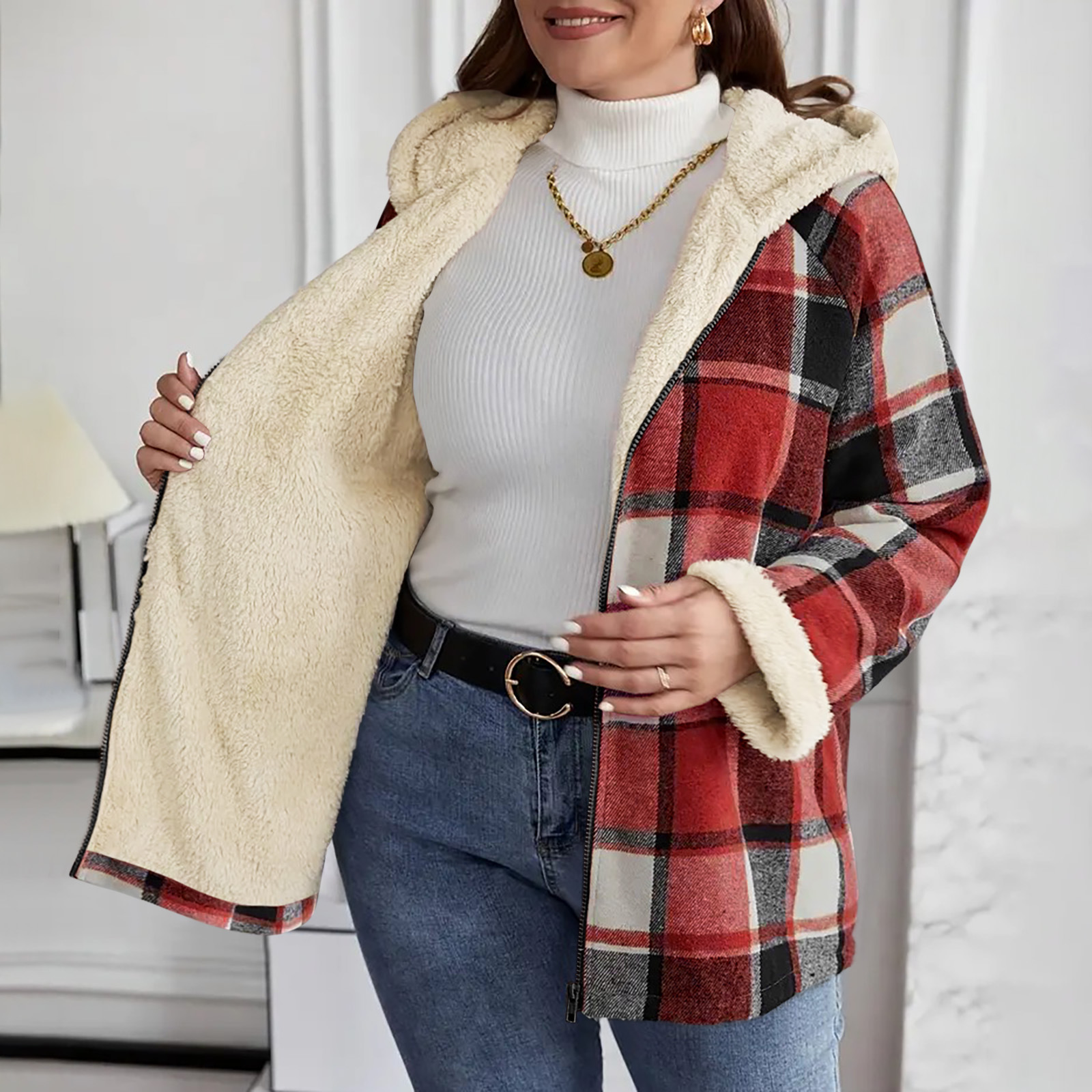 Checkered Patchwork Fleece-Lined Hooded Sweatshirt Jacket