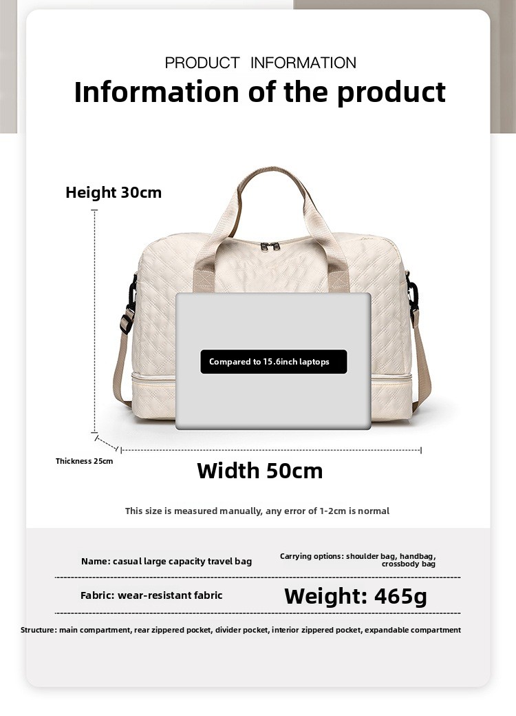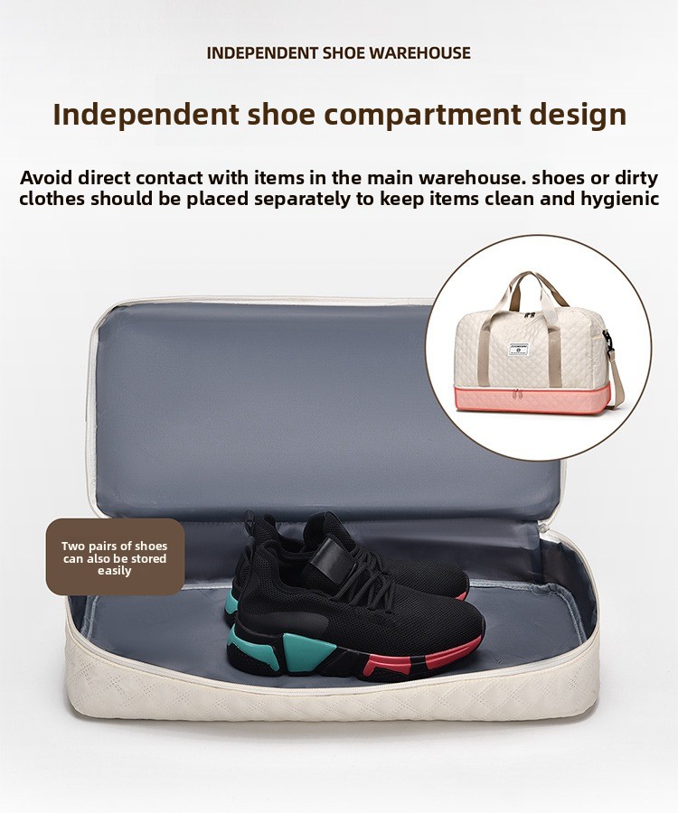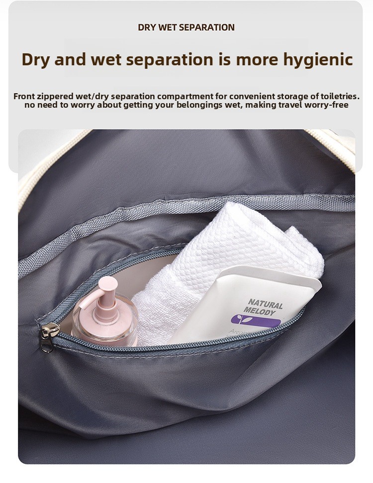 Dry-Wet Separation: Dedicated compartments to keep wet and dry items organized.