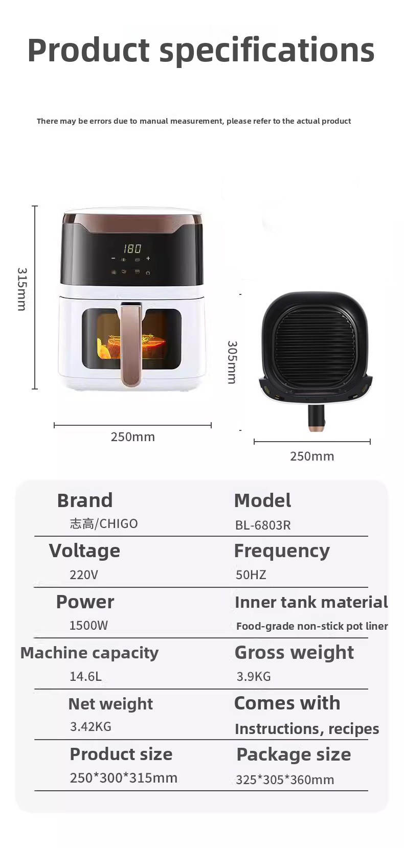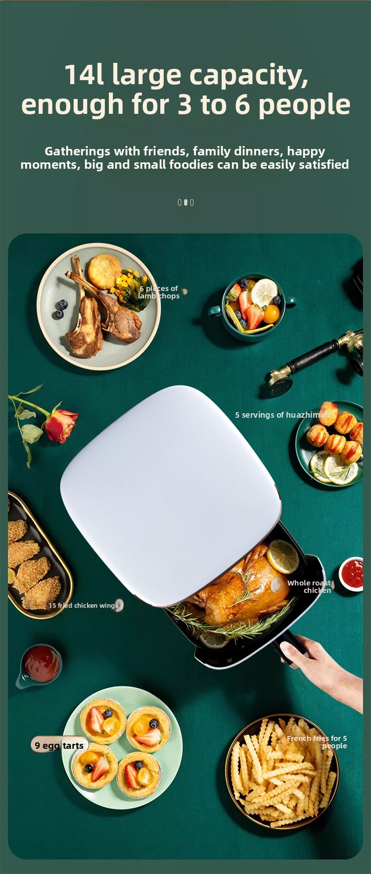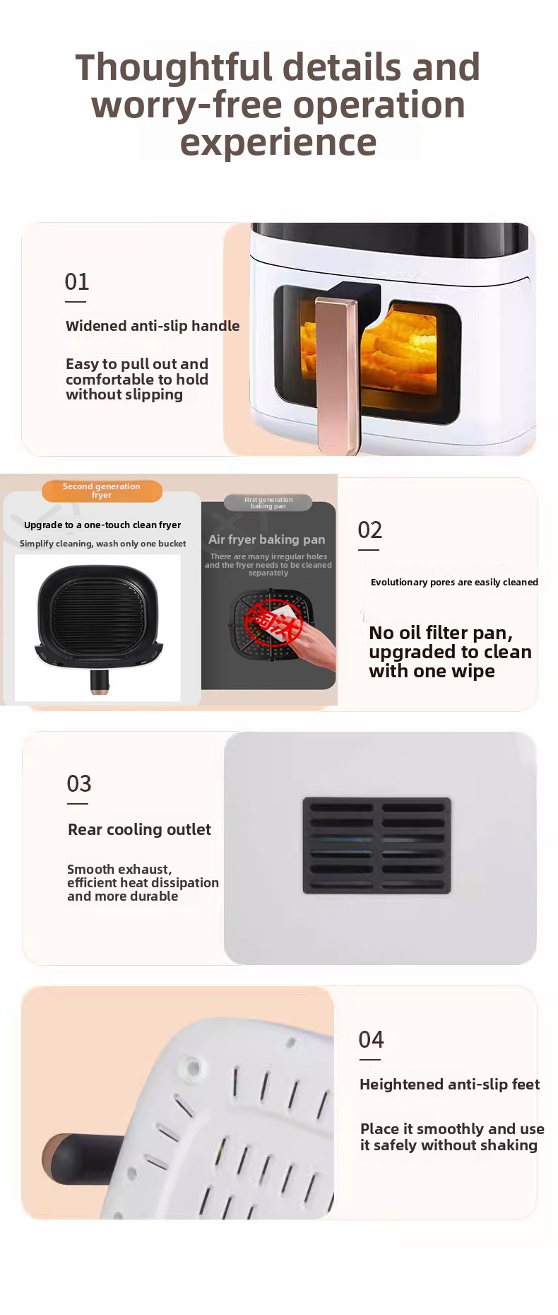 Oil-free Cooking: Hot air circulation technology for healthier, low-fat meals.