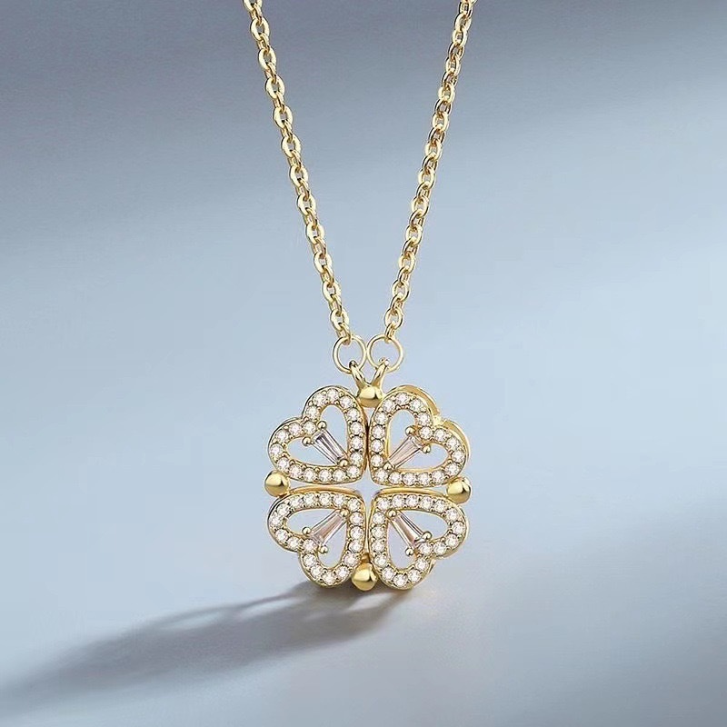 Four-leaf clover motif: Symbolic charm for luck and elegance.