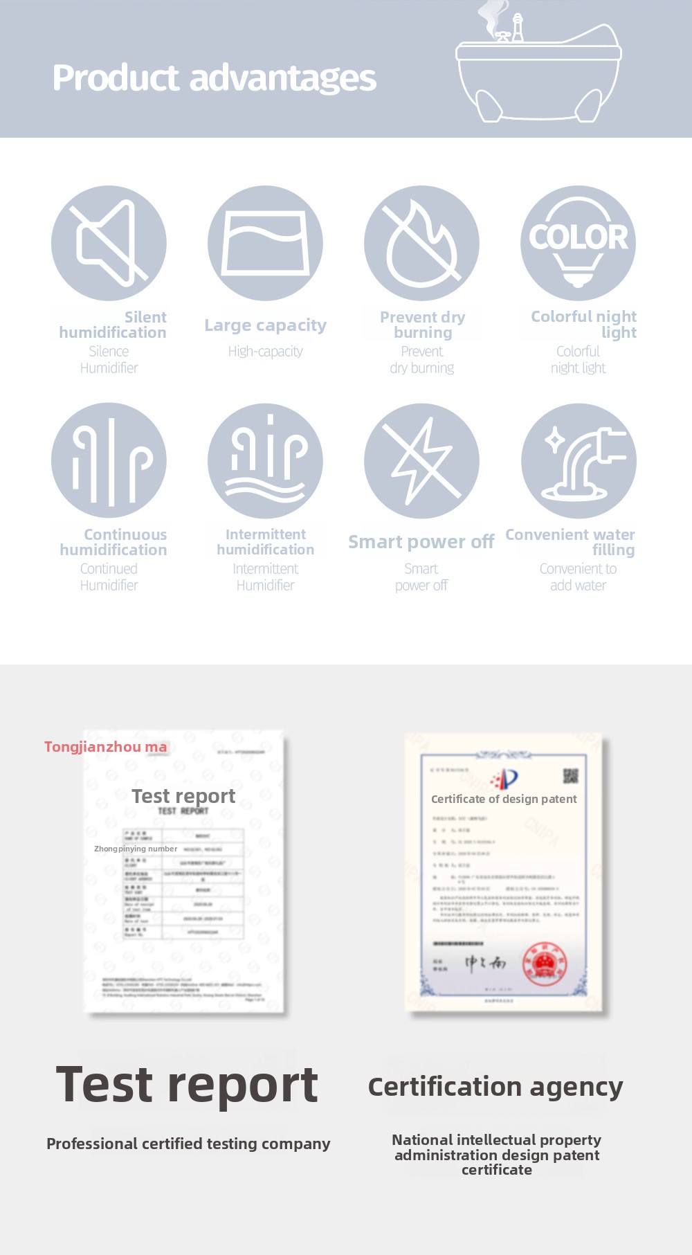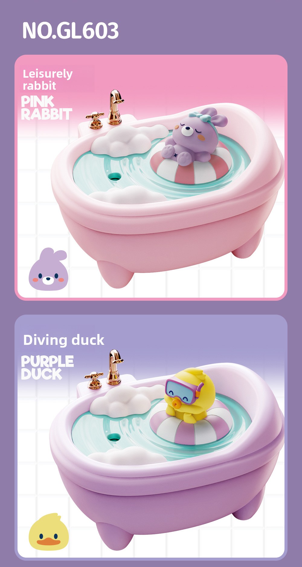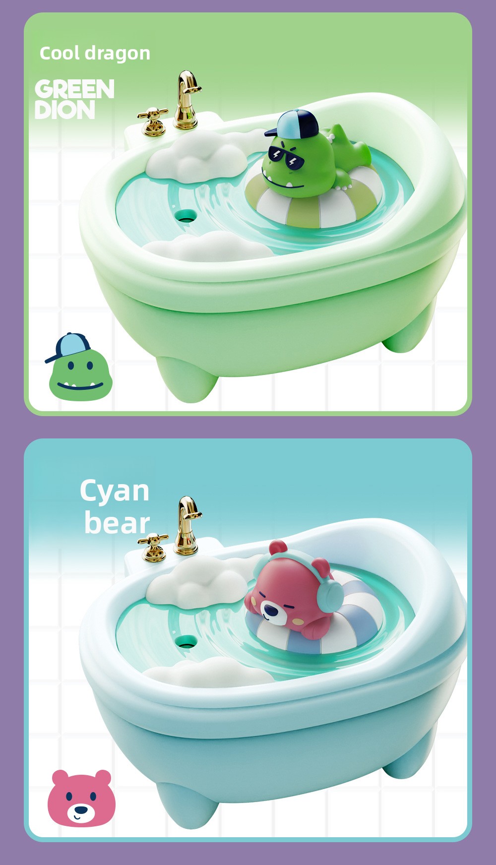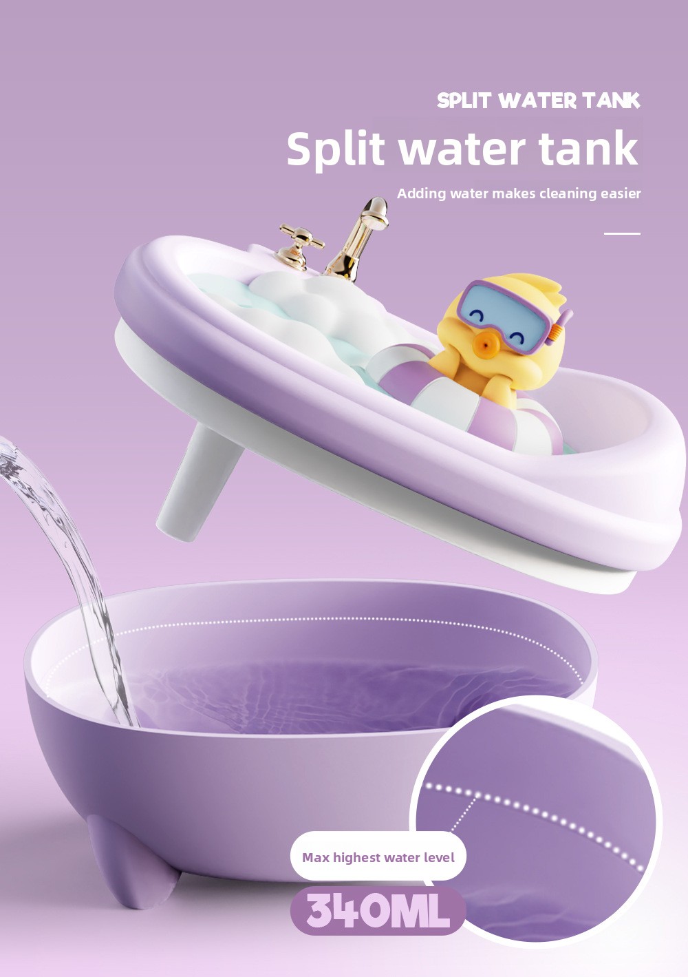 - Cute Pet Design: Adorable bathtub-shaped humidifier with cute animal figures (rabbit, duck, dinosaur, bear).