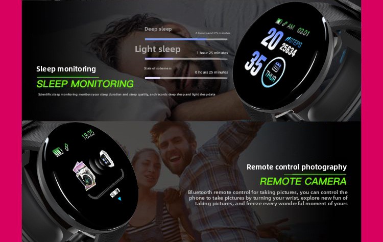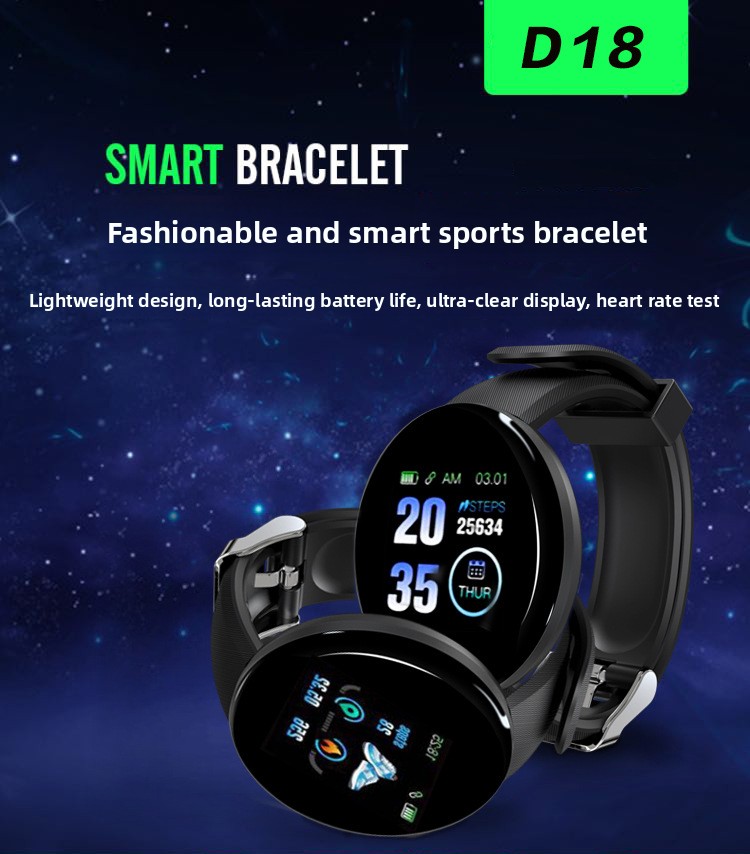D18 Round Screen Smart Bracelet with Heart Rate Monitor