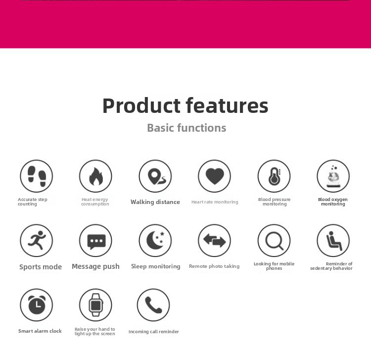 Multi-Function Health Tracking: Includes heart rate monitoring, sleep tracking, blood oxygen detection, and blood pressure measurement.