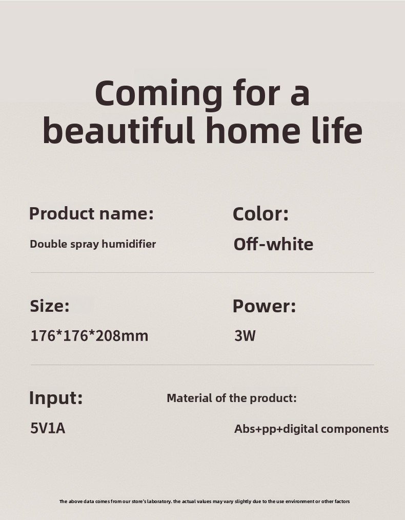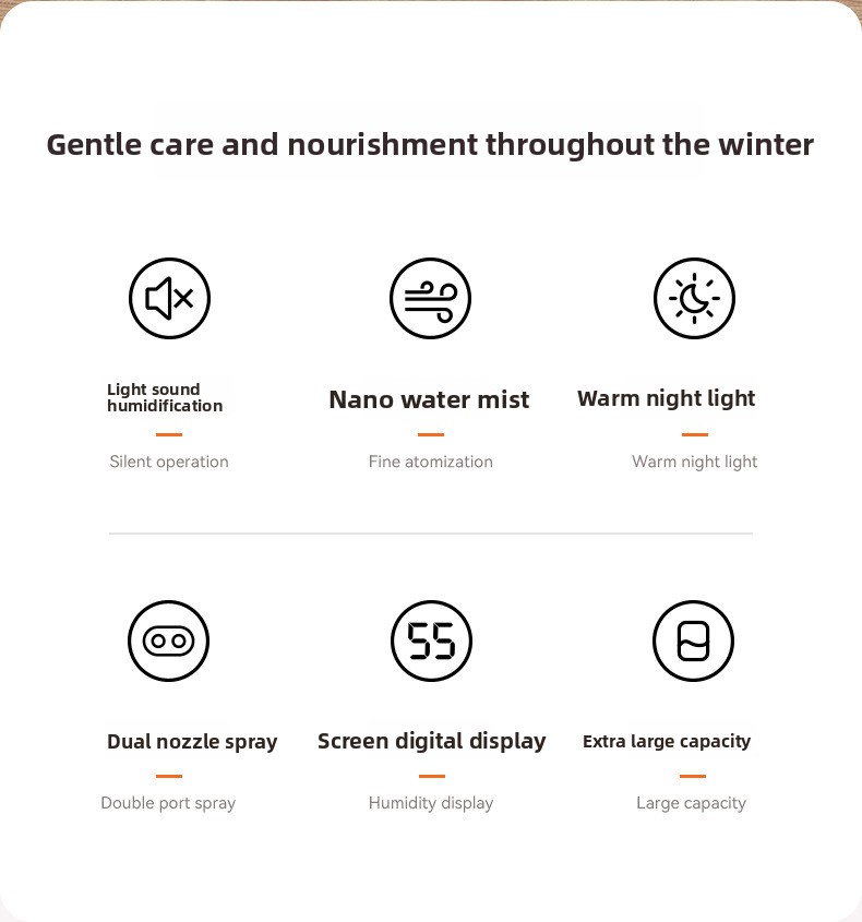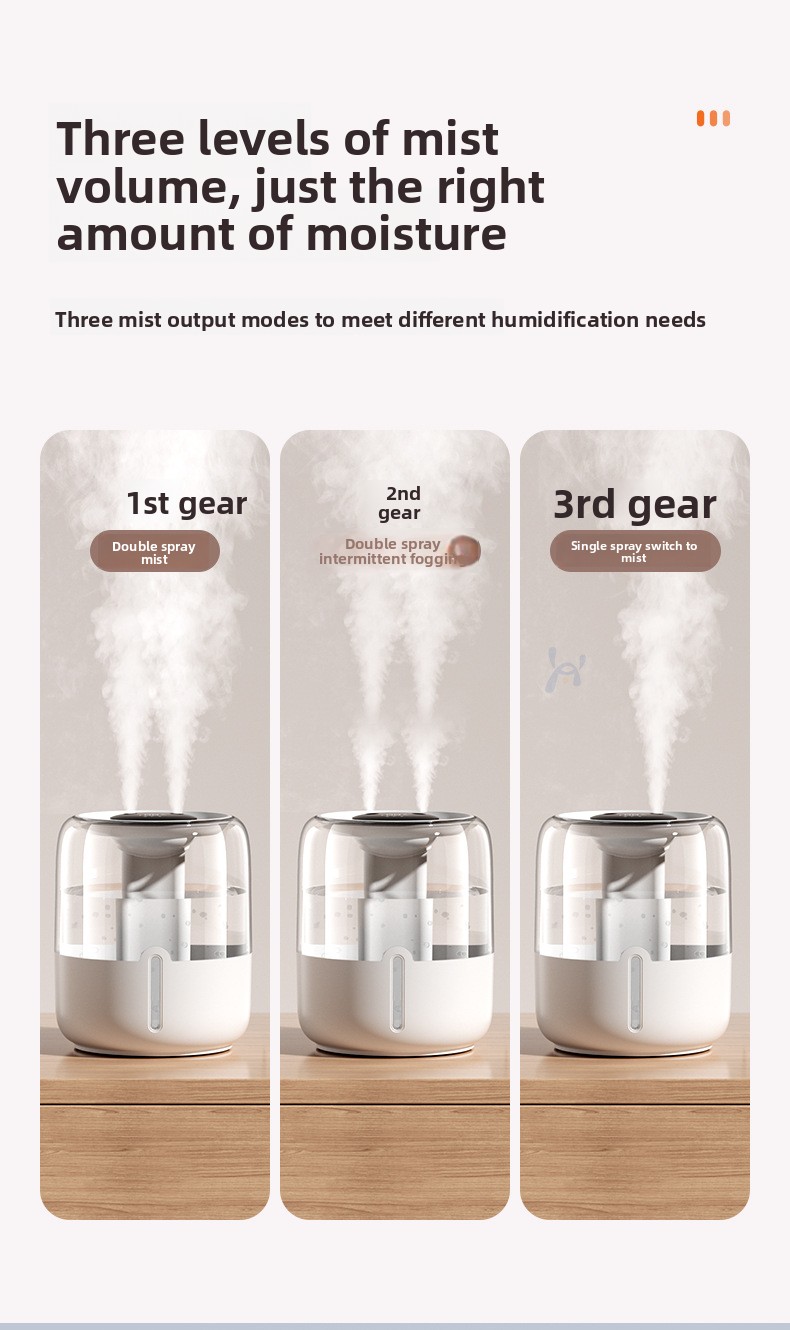Dual Spray: Double mist output (100ml/h) for efficient humidification.