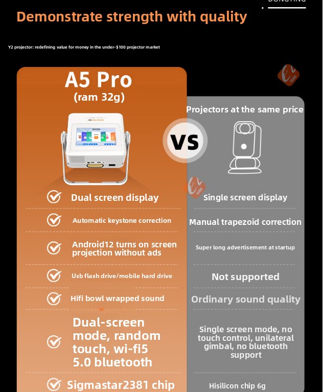 Dongying A5Pro Dual-Screen HD Touch Projector