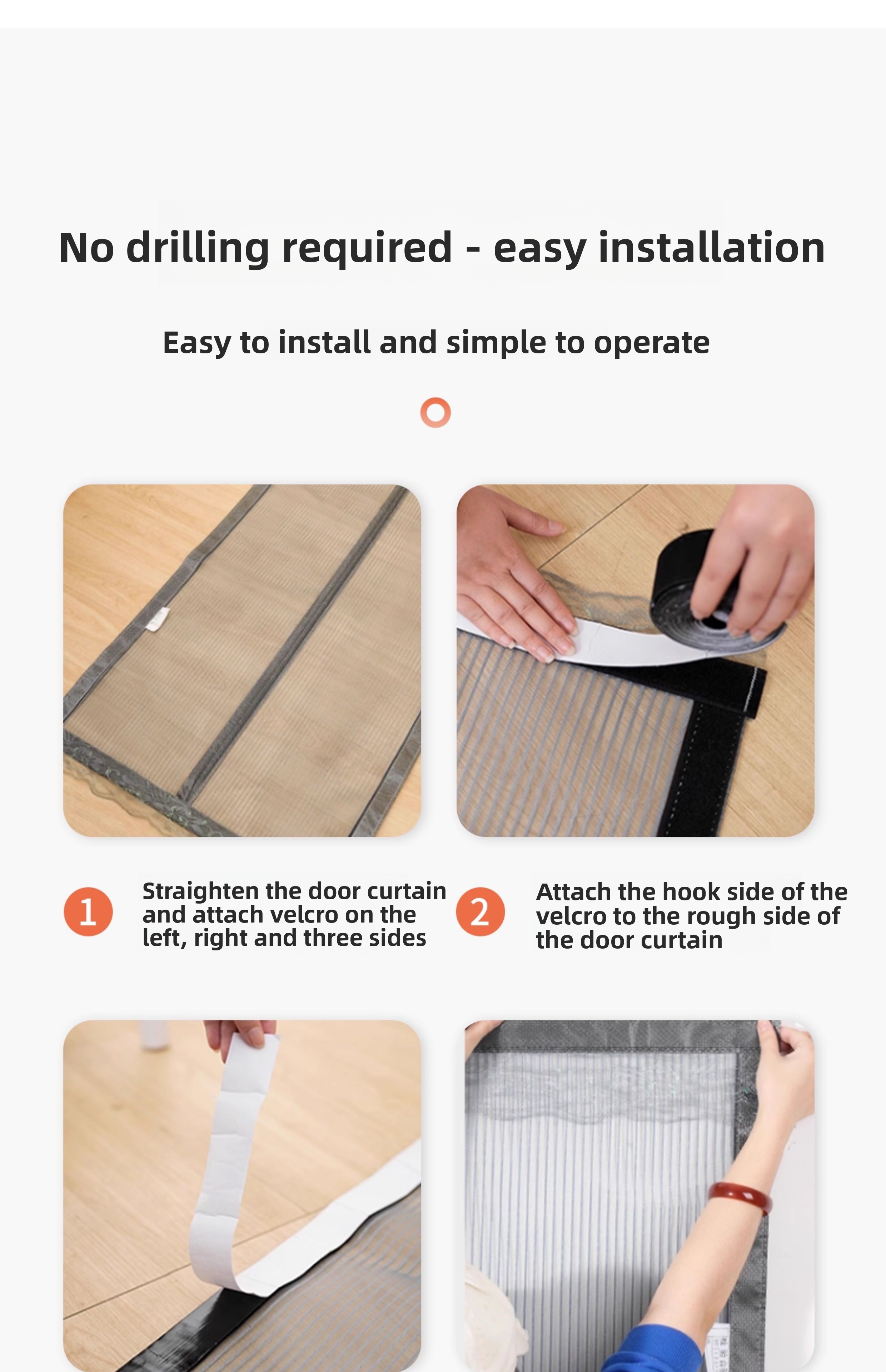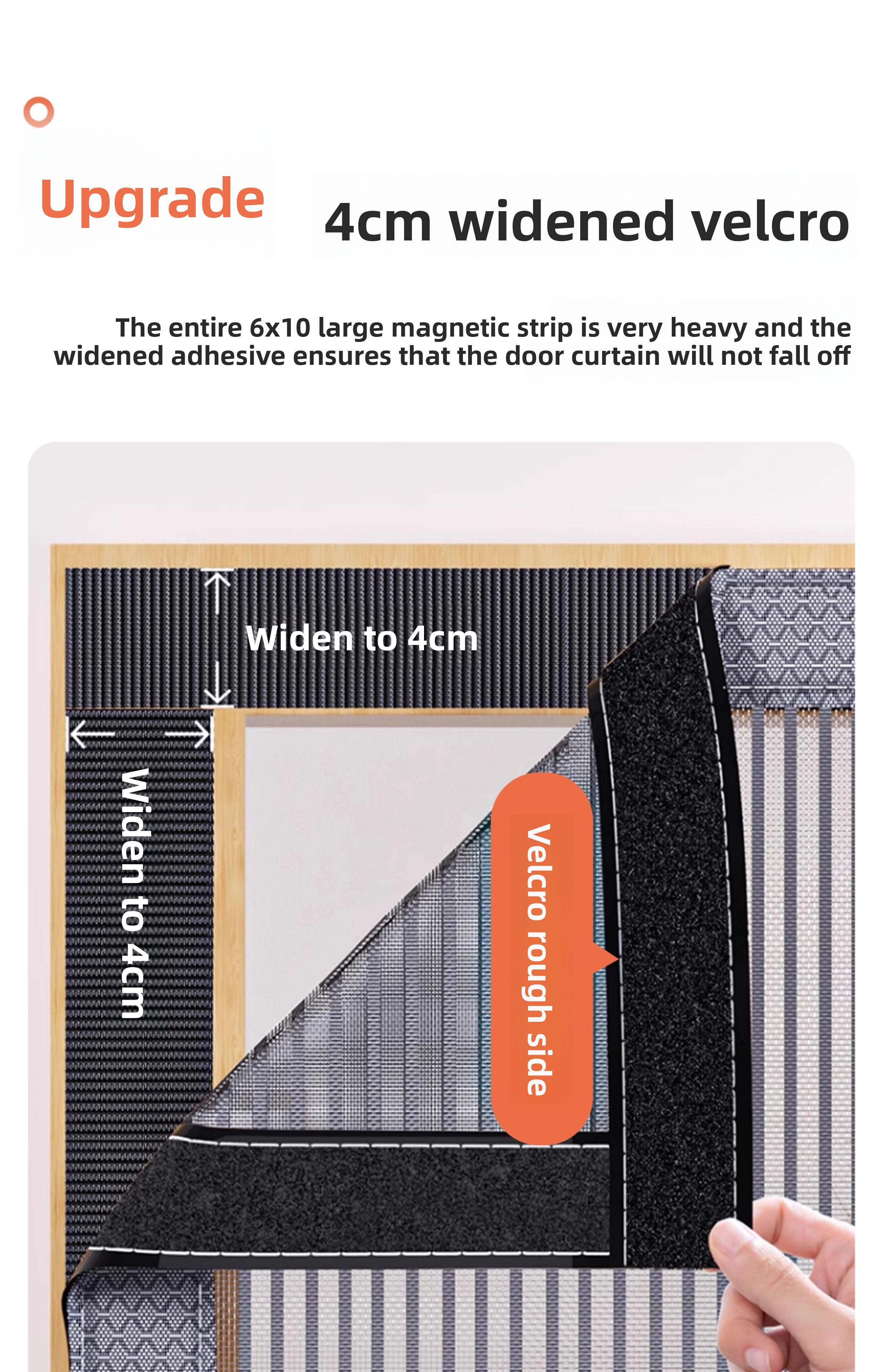 Equipped with widened (Velcro) for easy and firm installation on door frames.