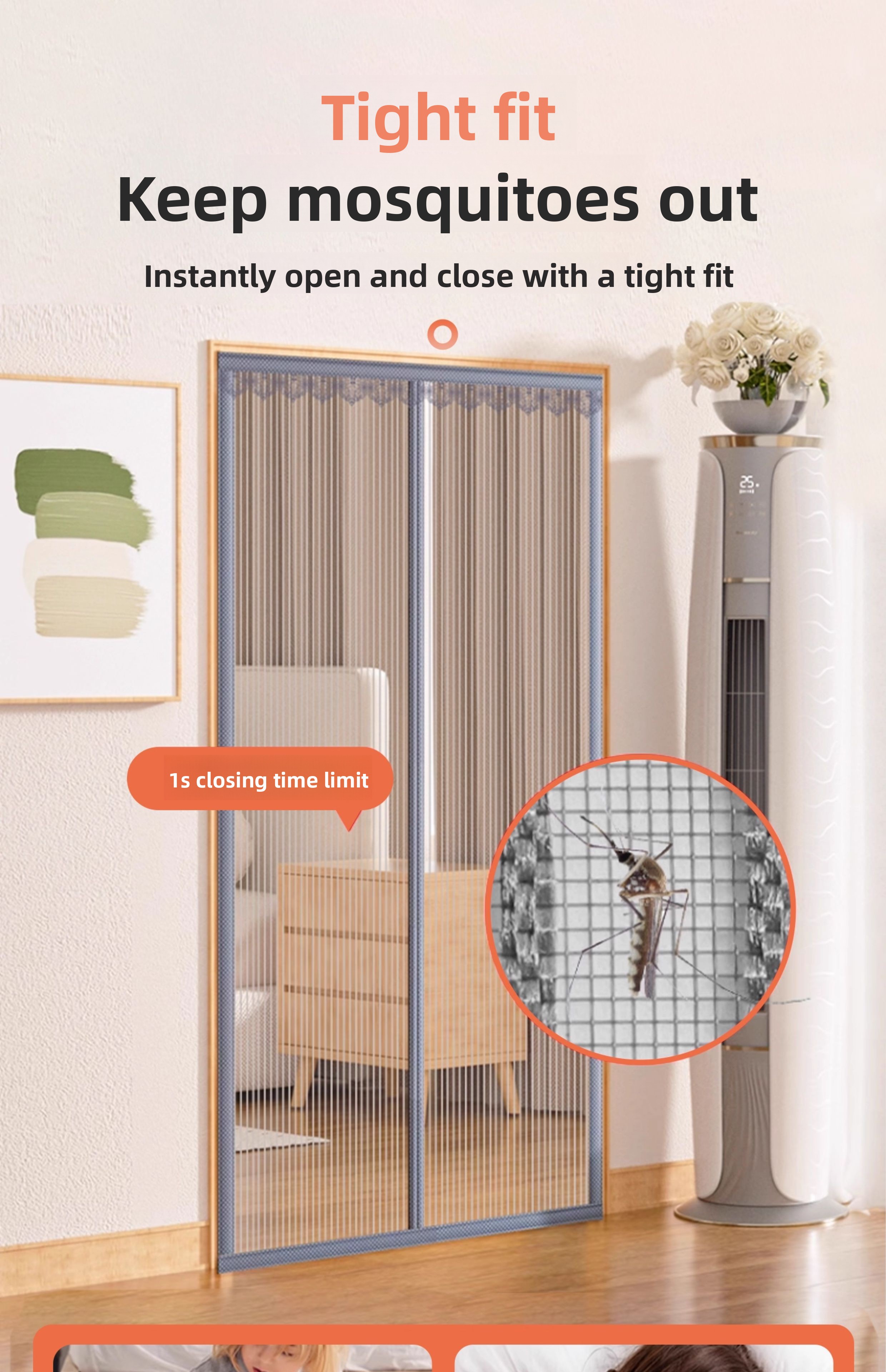 Applicable Scenarios: Homes, apartments, etc., for doorways needing insect protection and ventilation