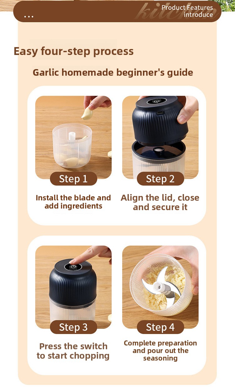 Electric Operation: Effortlessly mince garlic and other ingredients with the push of a button.