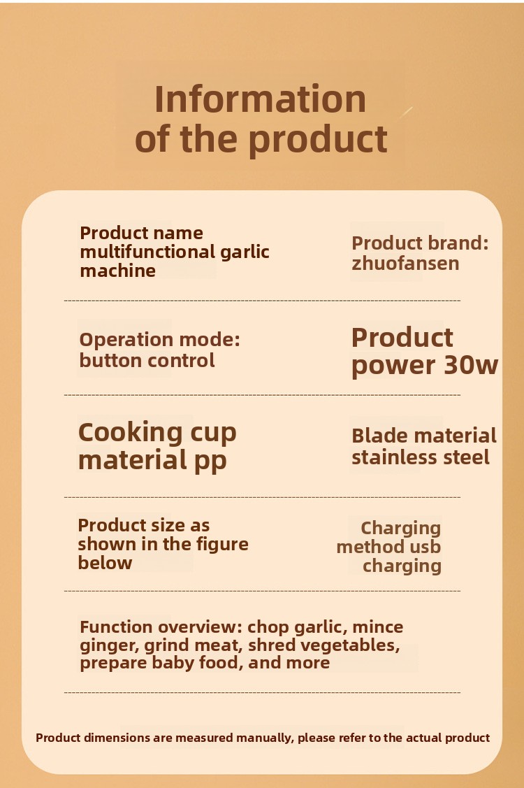 Multi-Functional: Suitable for crushing garlic, grinding meat, and preparing baby food.