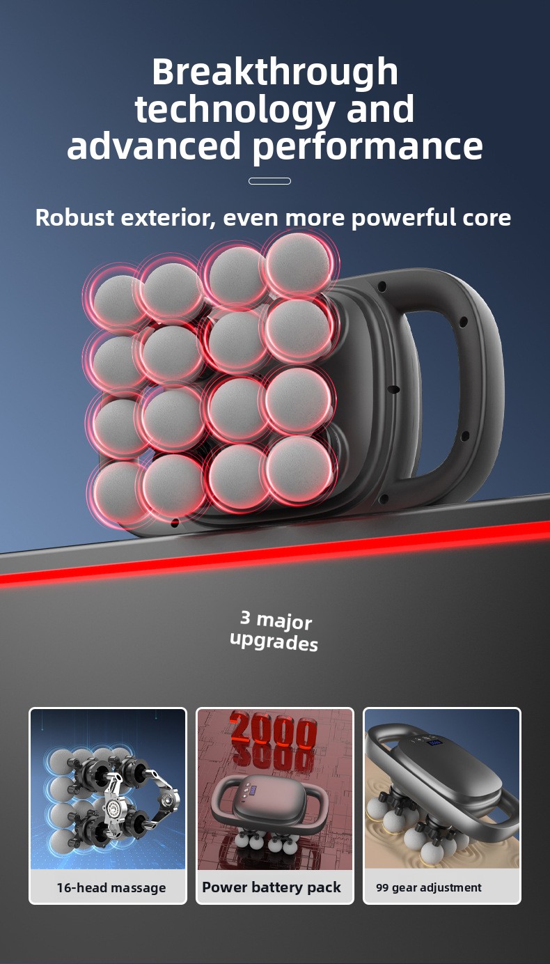 16-head massage: Provides comprehensive muscle relief with multiple attachment options.