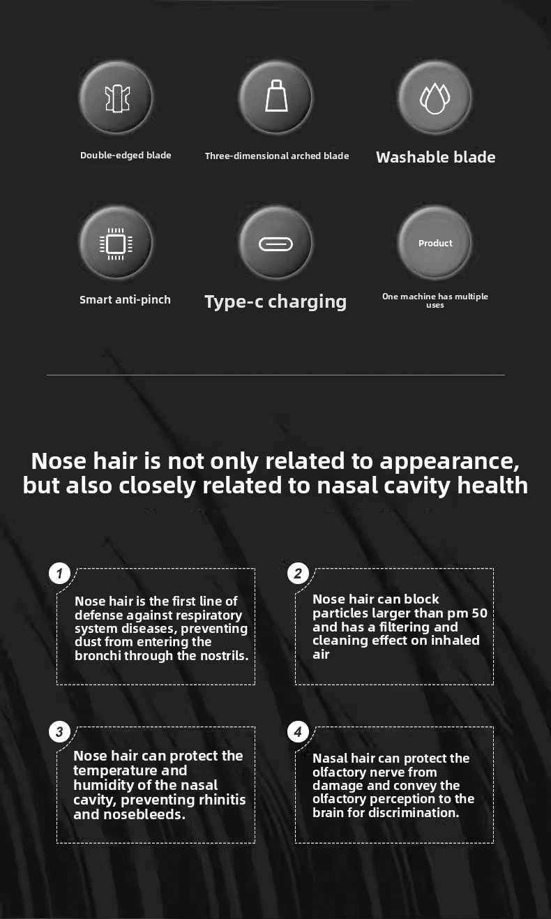 Precision Trimming: Efficiently removes nose hair without irritation.