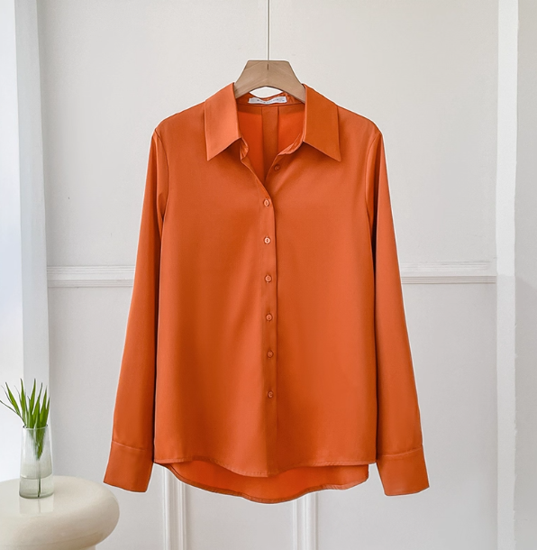 Elegant Orange Satin Shirt