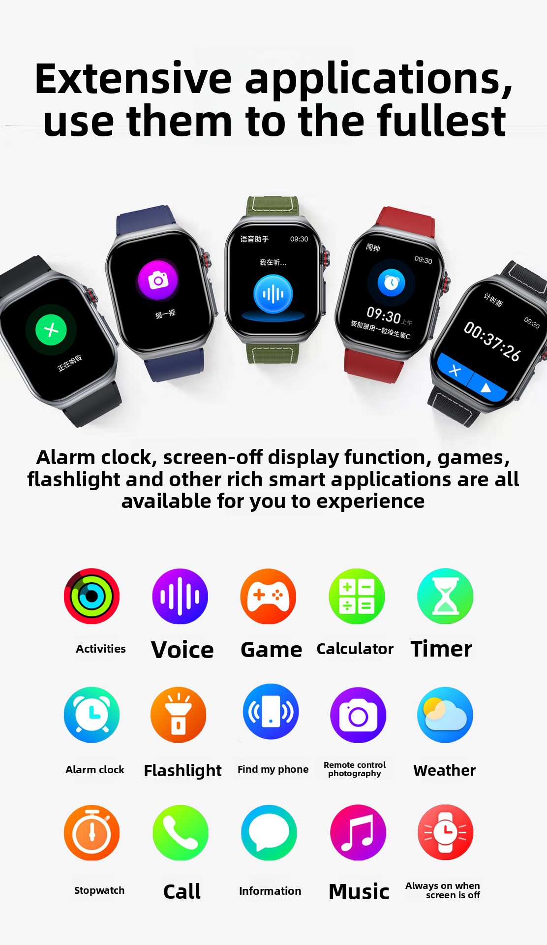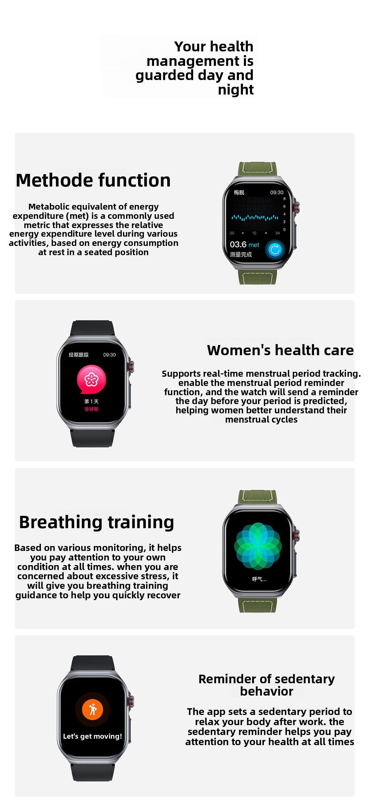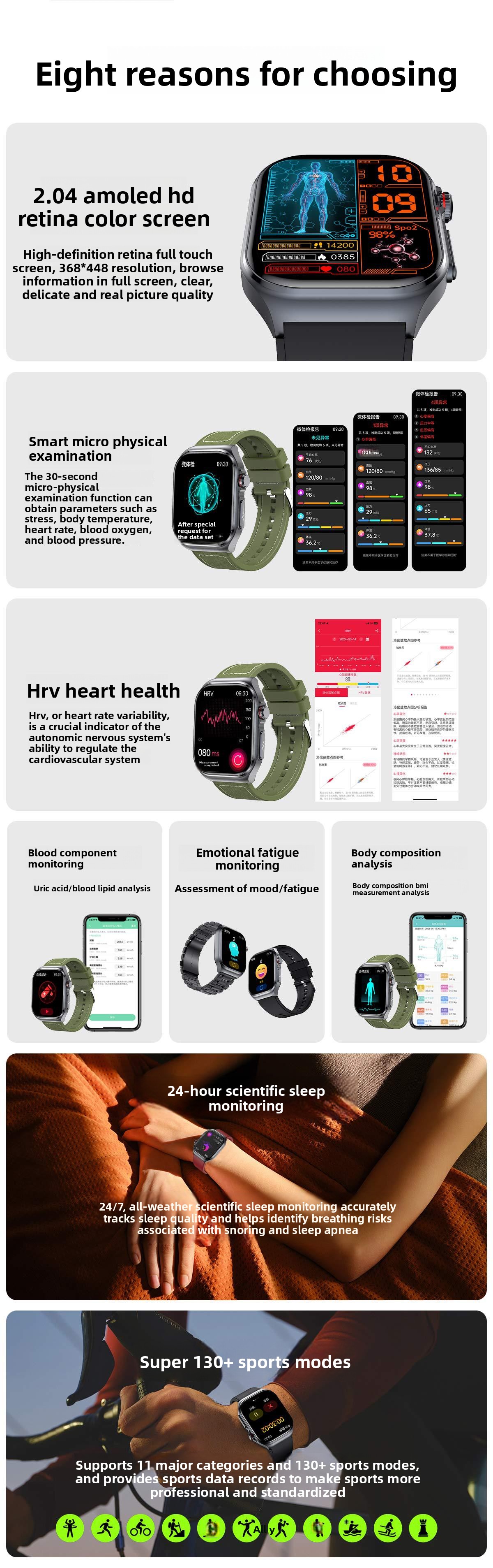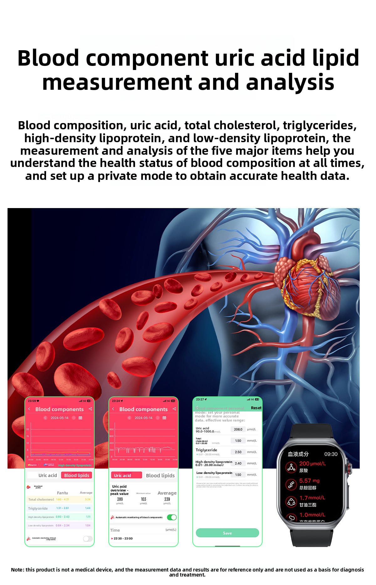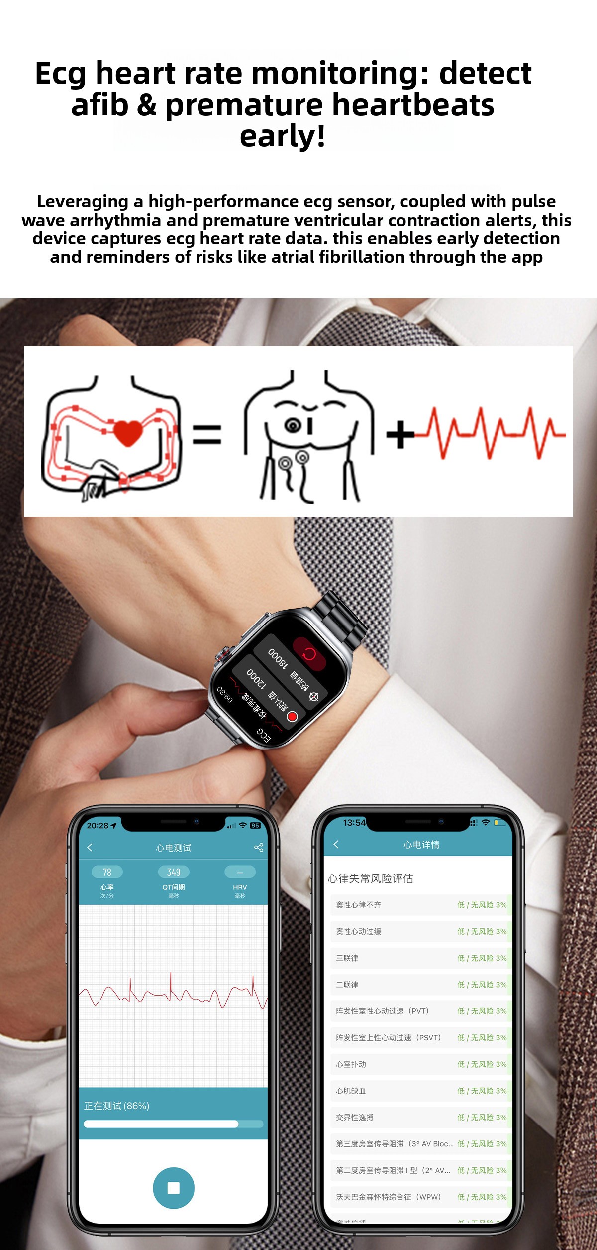 Health Monitoring: Non-invasive ECG, blood glucose, uric acid, and blood lipid monitoring.