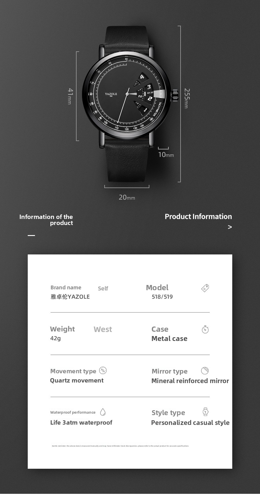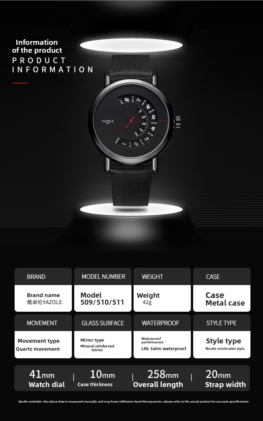 Quartz Movement: Precise timekeeping with reliable quartz technology.
