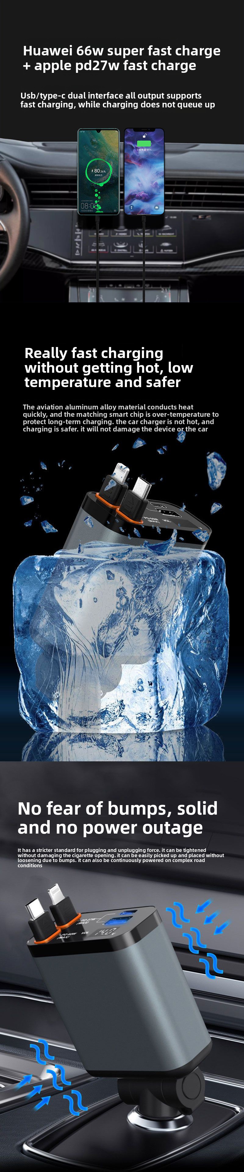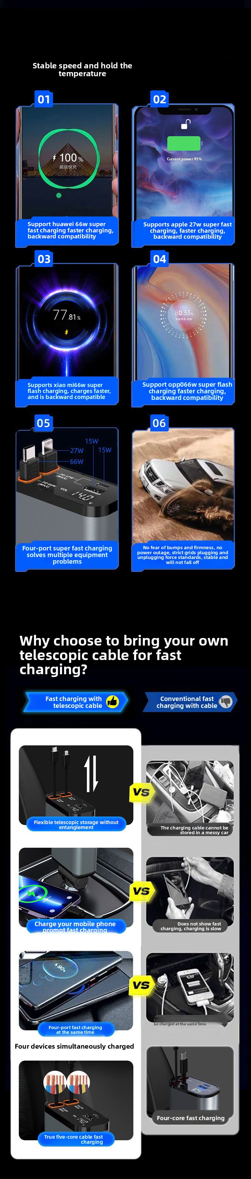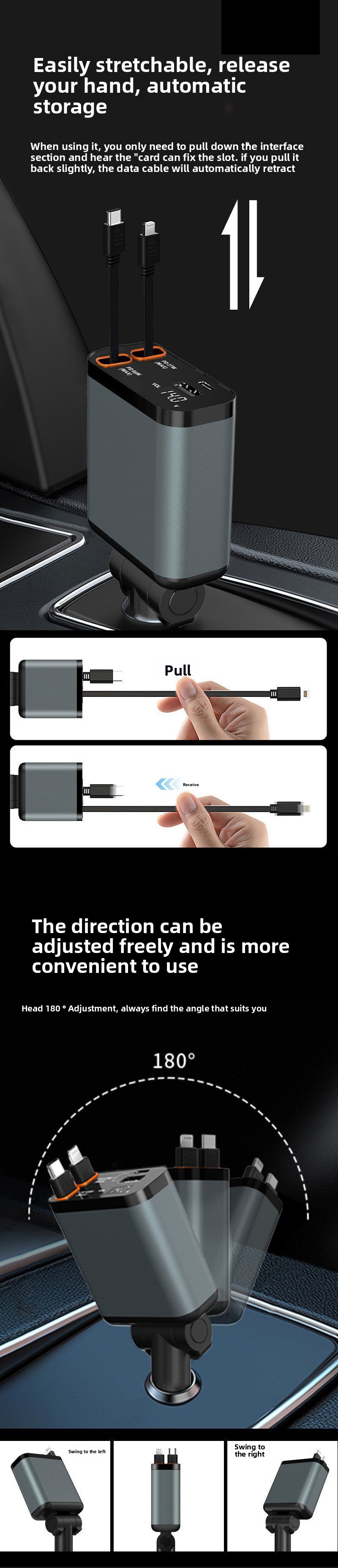Multi-Function: Four-in-one design with retractable cables for Android and Apple devices.