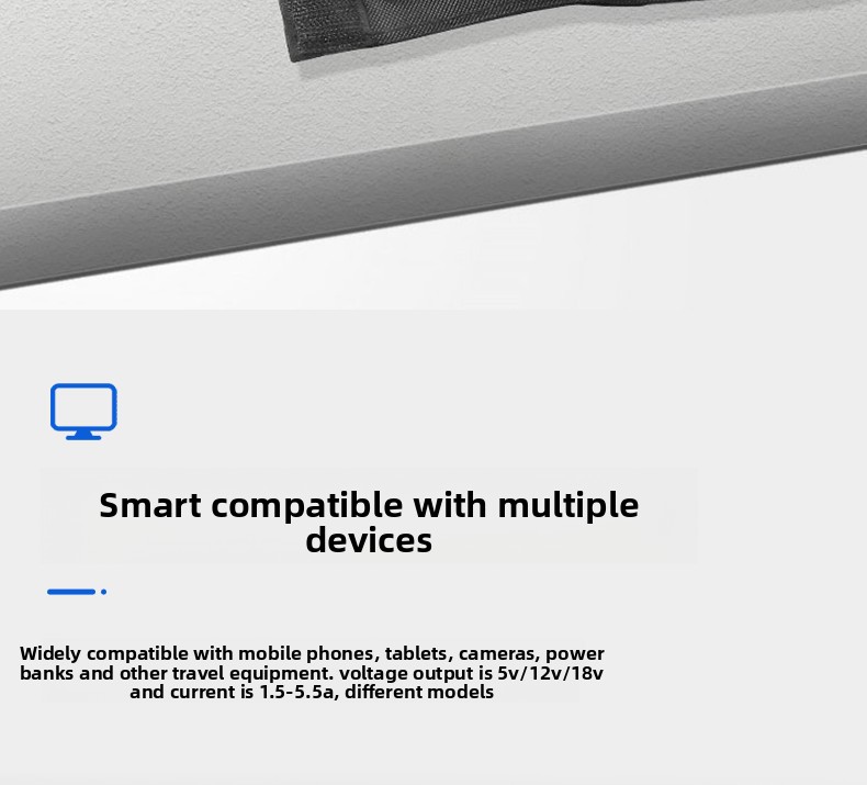 Fast Charging: Supports 5V/18V/12V outputs for quick device charging.