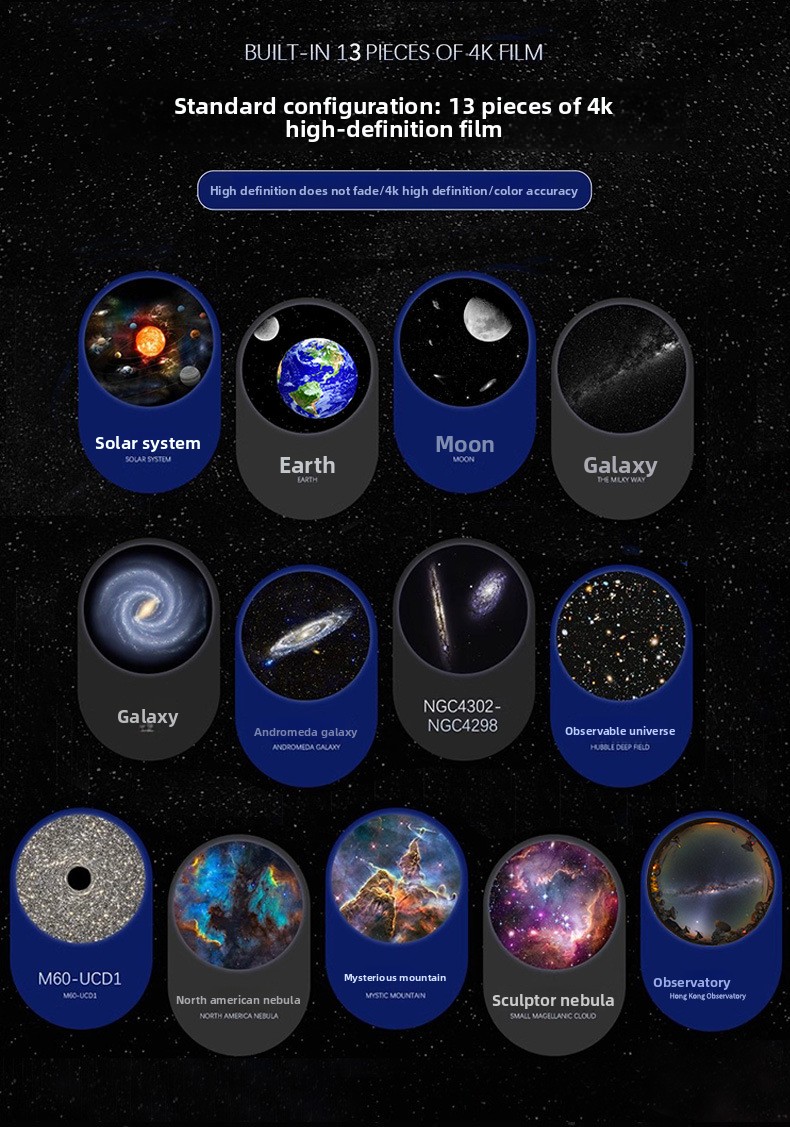 Multiple Film Sheets: Includes 13 HD film sheets for varied celestial displays.