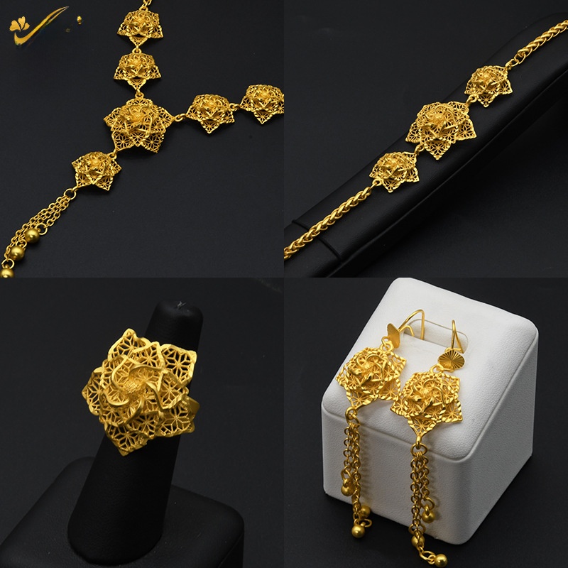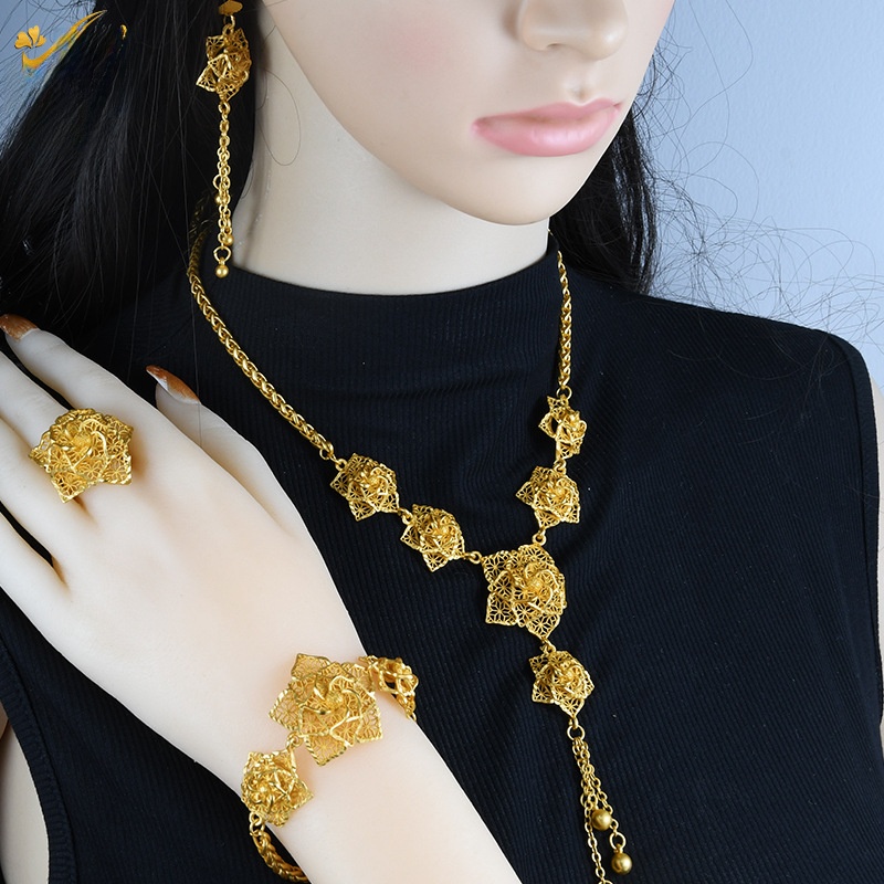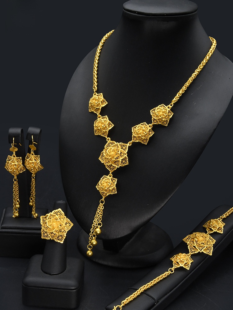 Complete Jewelry Set: Includes necklace, earrings, bracelet, and ring for a coordinated look.