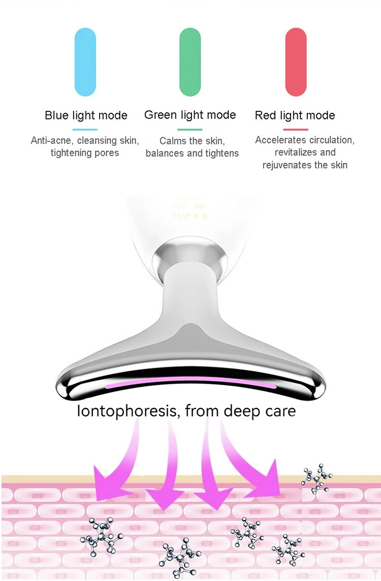Microcurrent Technology: Uses gentle microcurrent for skin rejuvenation and neck massage.