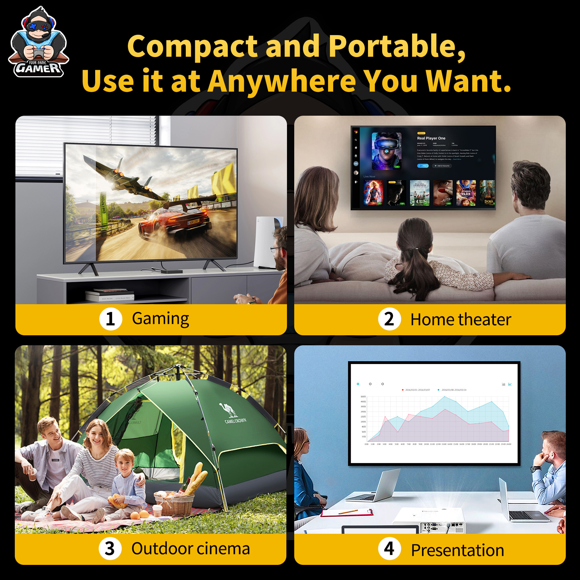 HD 4K Projection: Delivers high-definition 720P (1280Ć720) resolution with 180ANSI brightness for clear visuals.