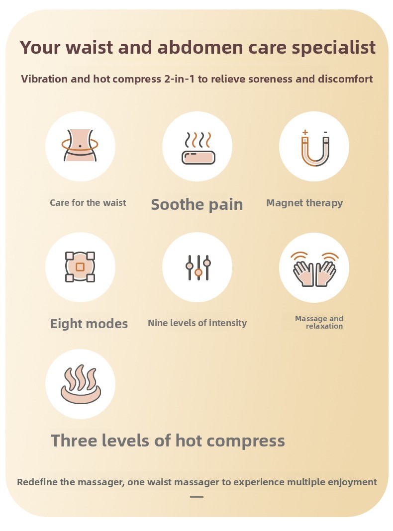 Heating Function: Provides soothing warmth to the waist and abdomen for relaxation and pain relief.