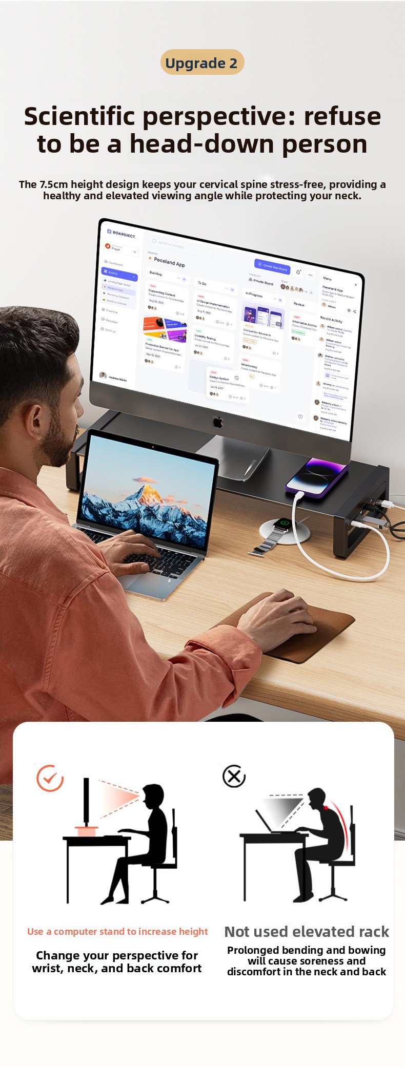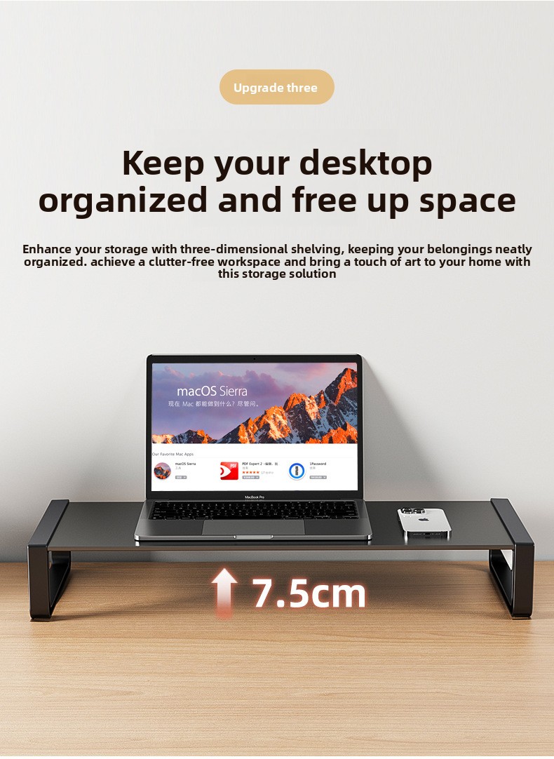 Ergonomic Design: Raises monitor height for better posture and comfort.