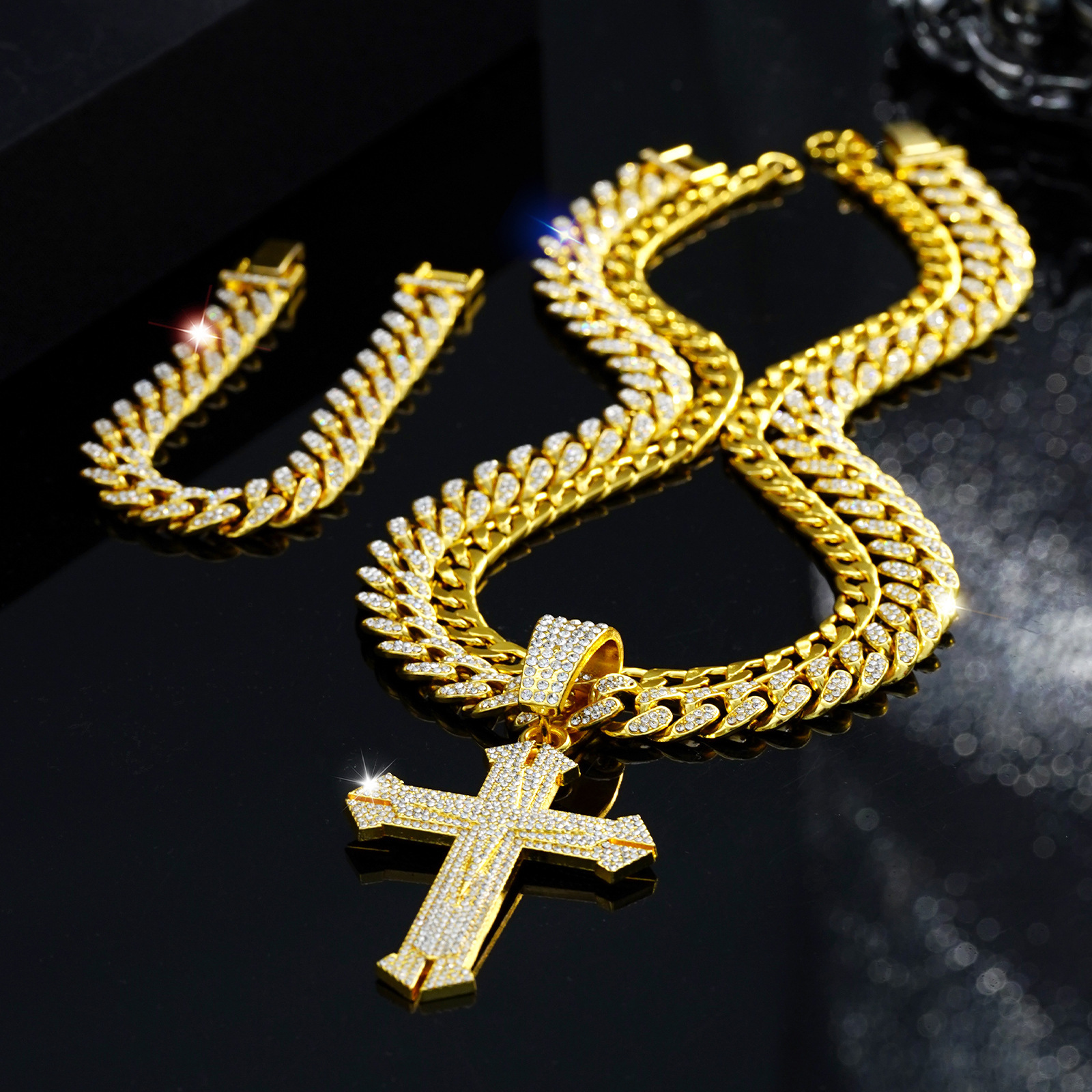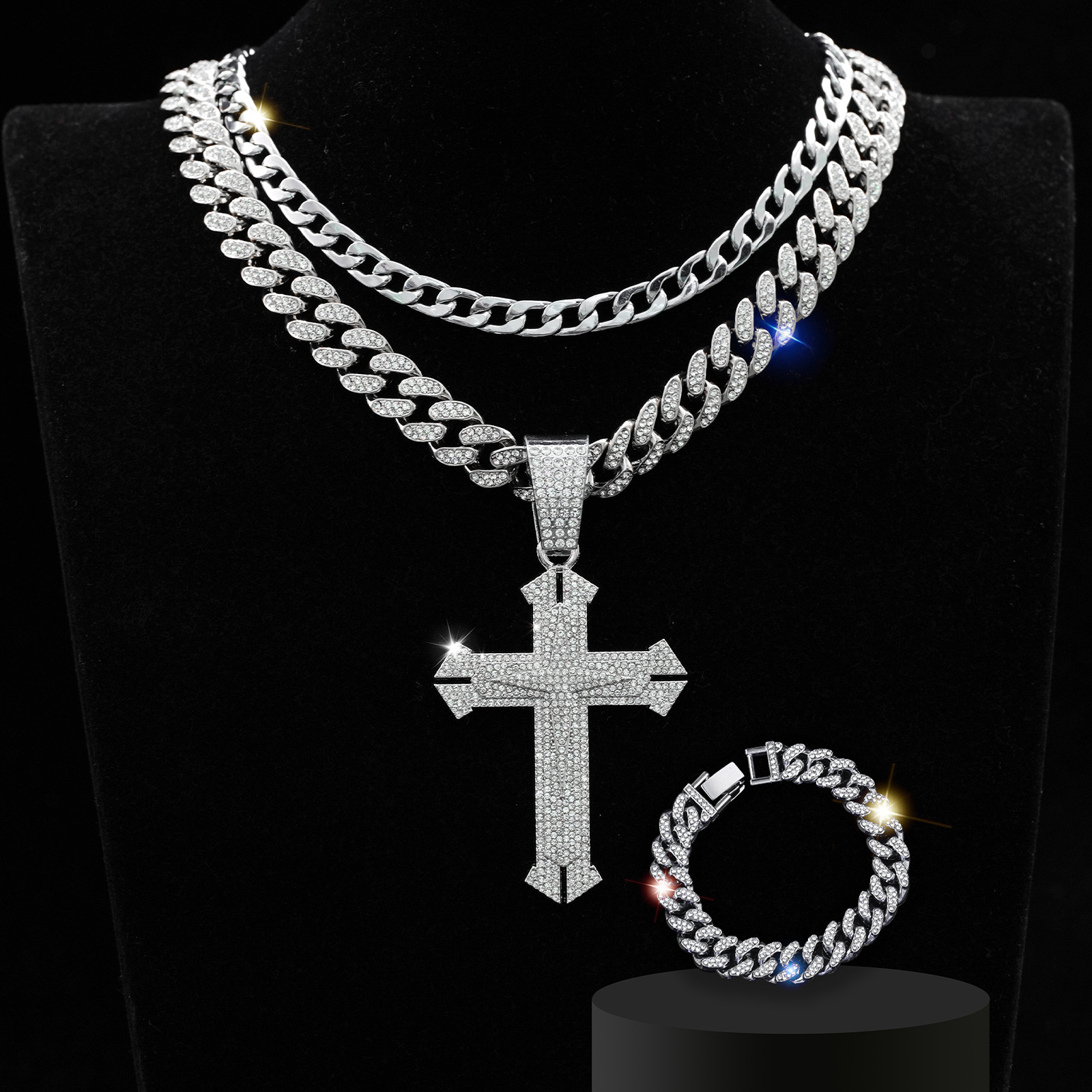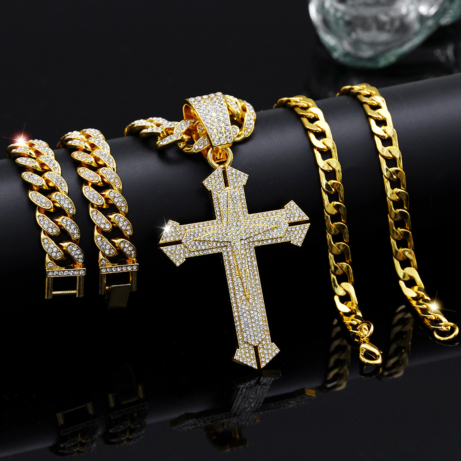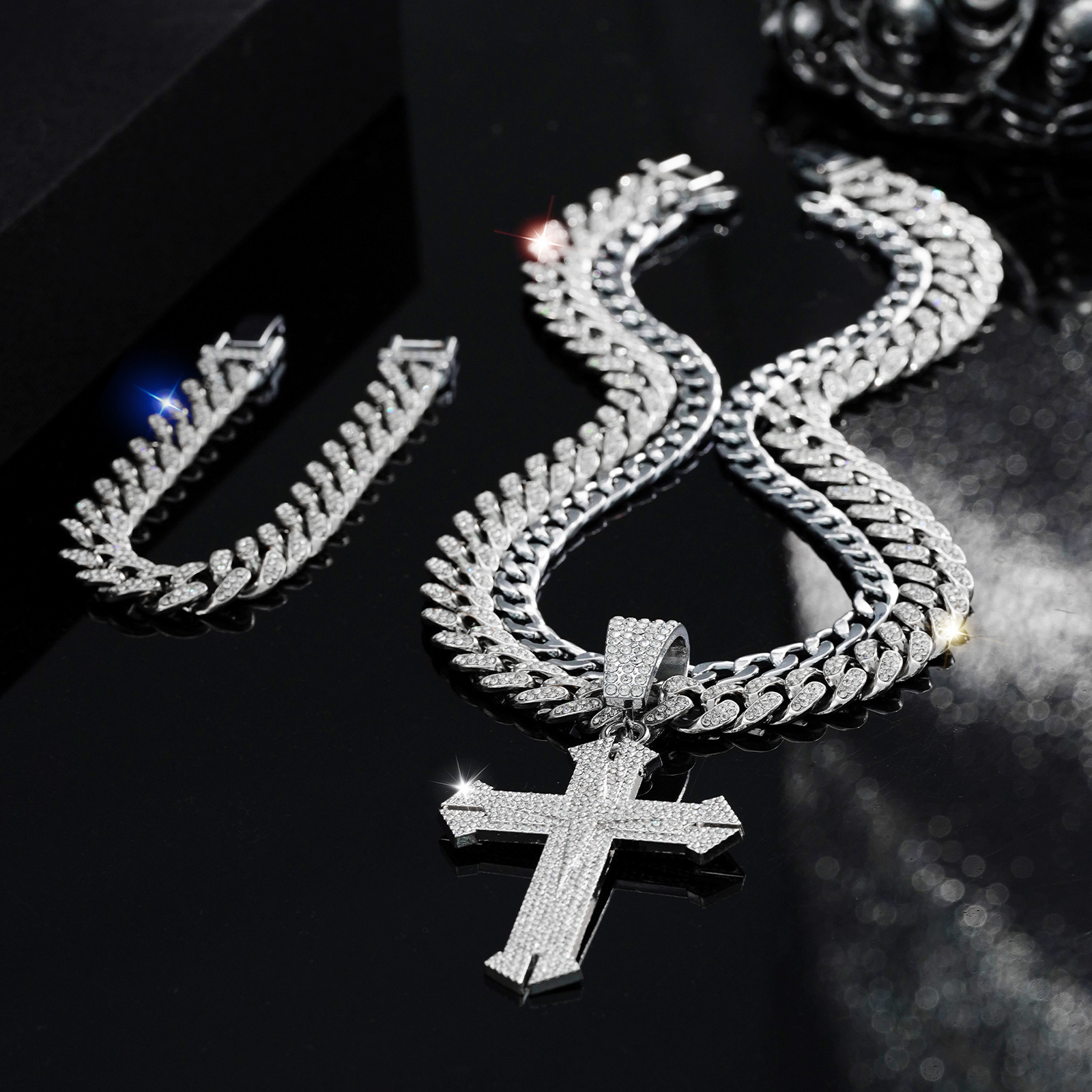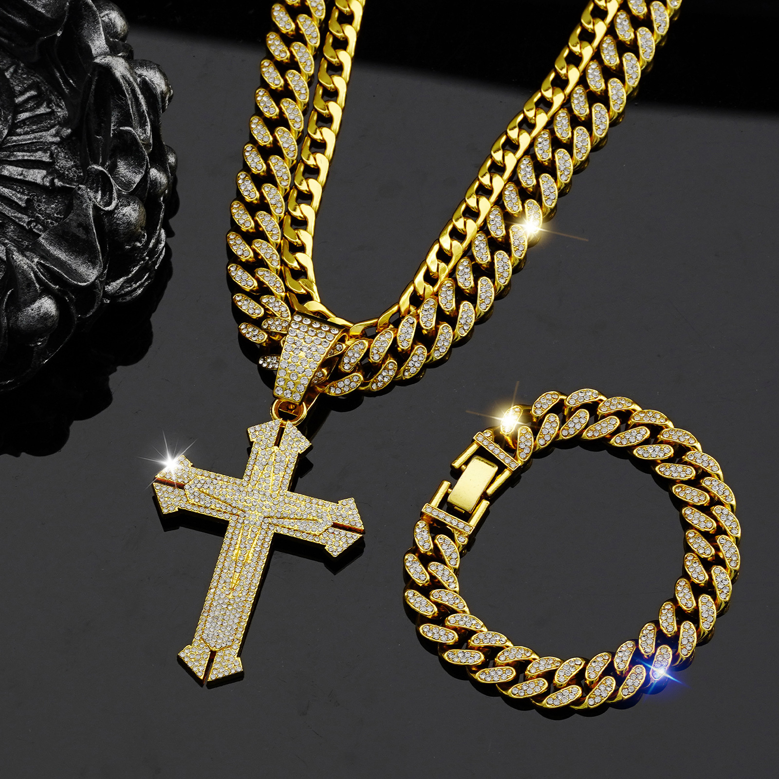 Hip Hop Cross Pendant Necklace and Bracelet Set