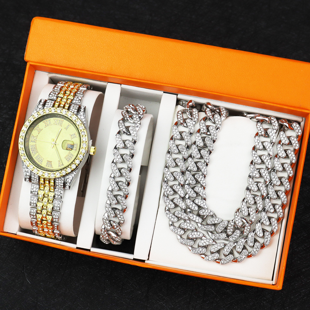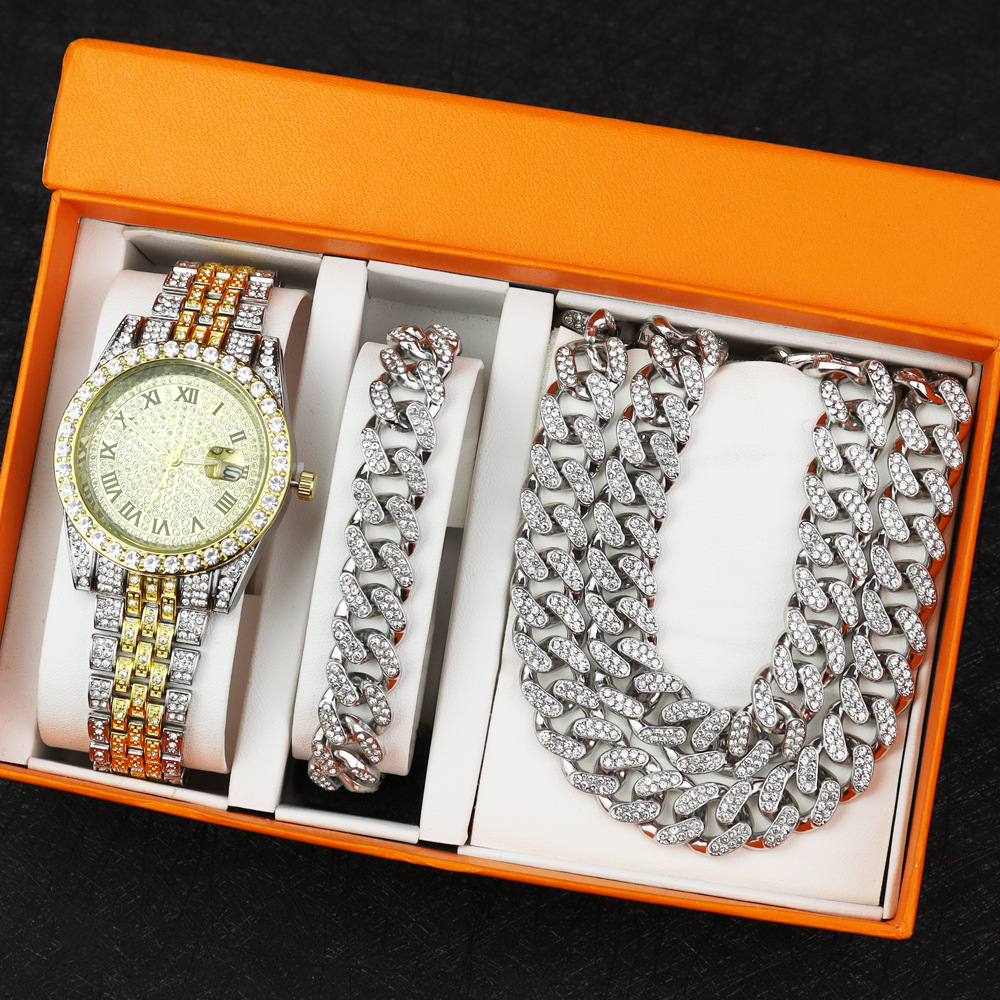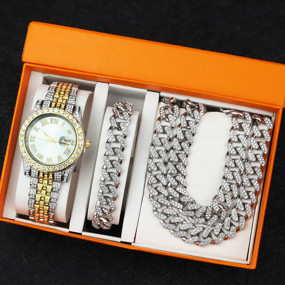 Hip Hop Quartz Watch with Cuban Bracelet and Necklace Set