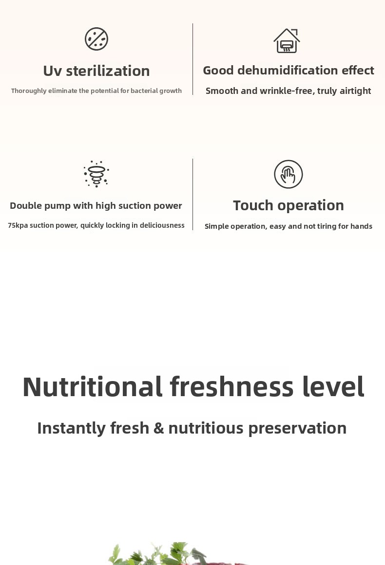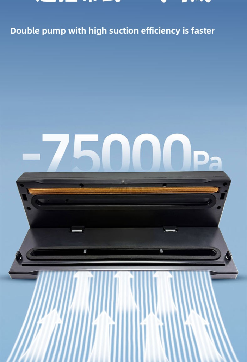 Dual Pump Power: Enhanced suction for efficient vacuum sealing.