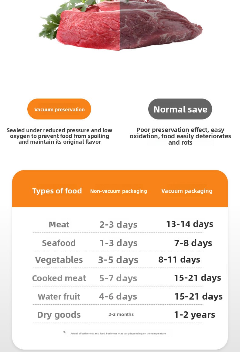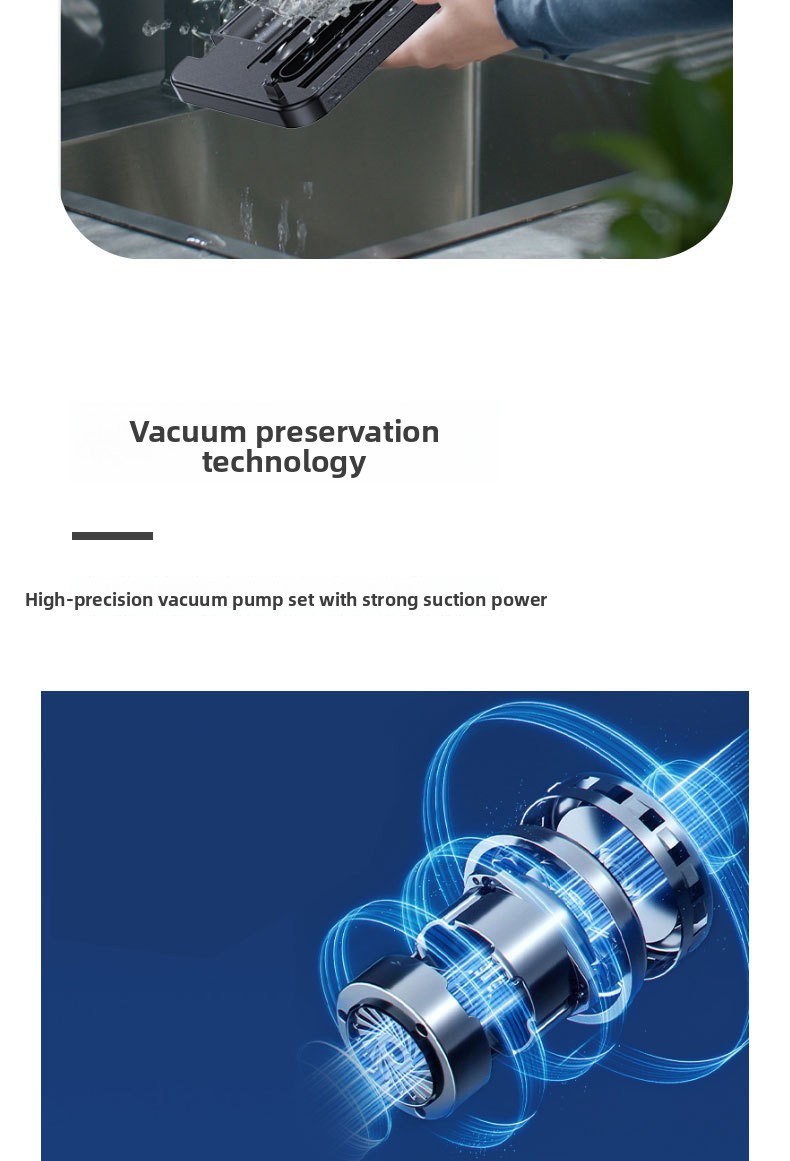 Features: Vacuum sealing, plastic sealing, cutting tool, UV sterilization