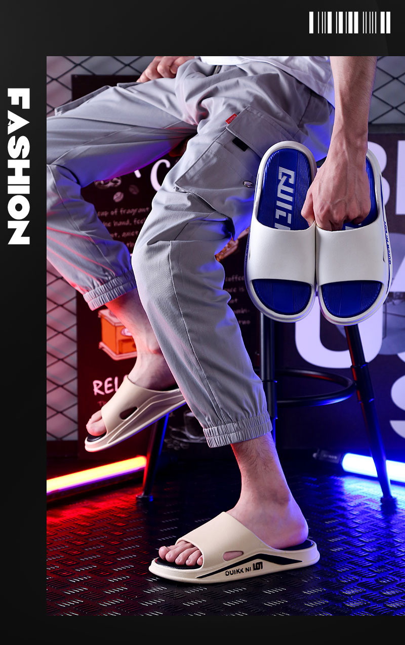 1. Fashionable Design: Trendy men's slippers with a stylish look.